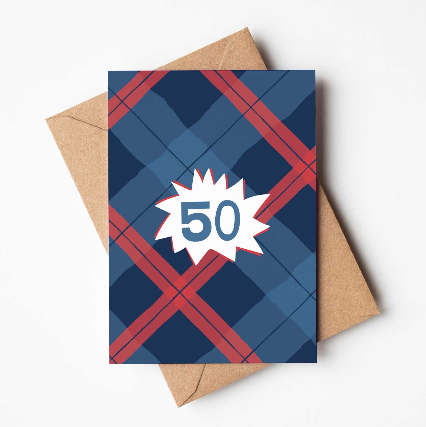 '30' -This patterned tartan Scottish card design is printed in the UK. -Matt print onto 300gsm textured cardstock. -The A6 sized card is blank inside and comes with a brown recycled envelope. --Wholesale orders are packaged with card seals