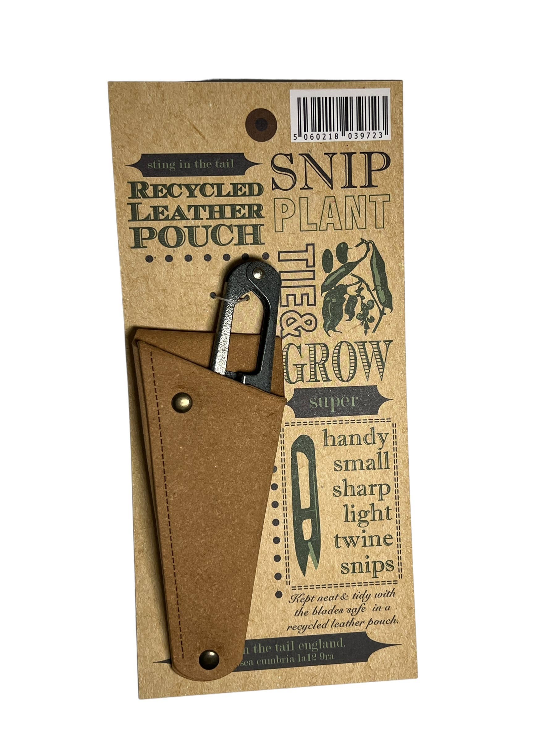 Sting in the Tail's Large Gardening Scissors in a Recycled Leather Pouch are the perfect gift for a keen gardener. The sharp scissors are ideal for trimming flower heads, roses, climbing plants and also handy for Bonsai fans. Keep safely and tidily by storing the scissors in the handy recycled leather pouch. Size: 11cm x 18cm Material: Steel Scissors, Recycled Leather. Care: Blades are Sharp.