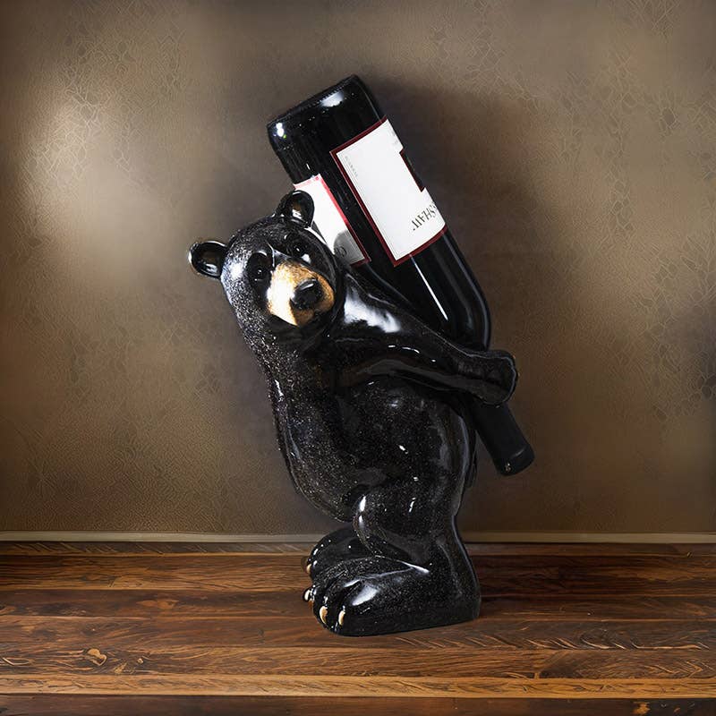 Black Bear and Moose Wine & Glass Bottle Holder Product Size: 10.71"L X 8.66"W X 13.39"H Material: Cold Cast Resin Case Pack: 2