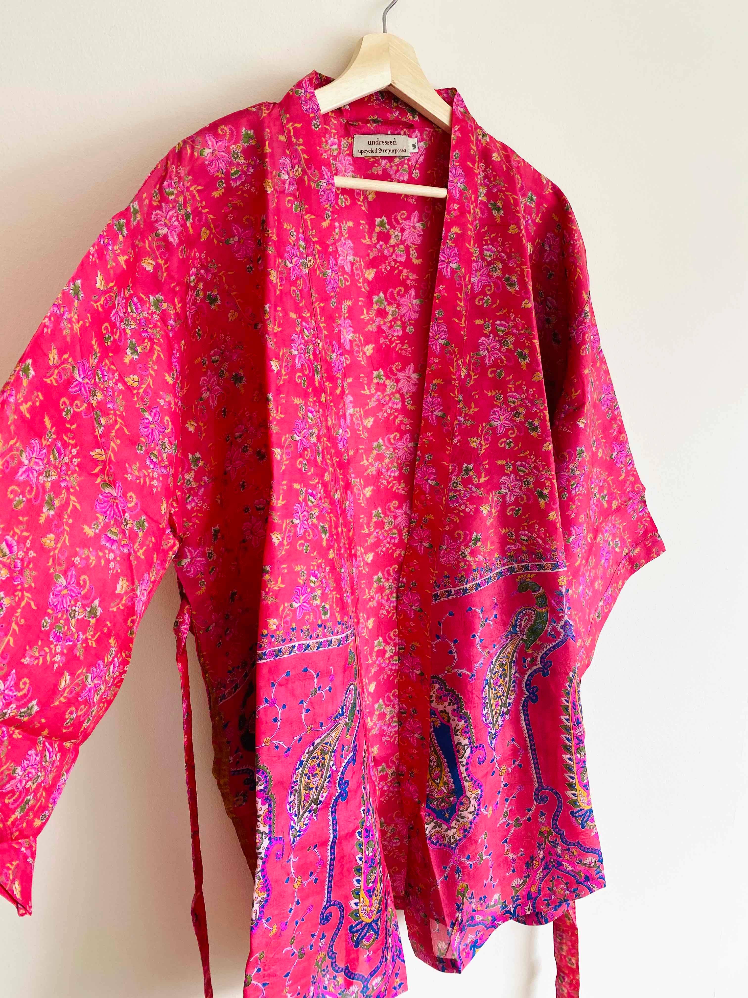 Handmade Kimono Cotton Kimono Bathrobe Kaftan - Pink Owl