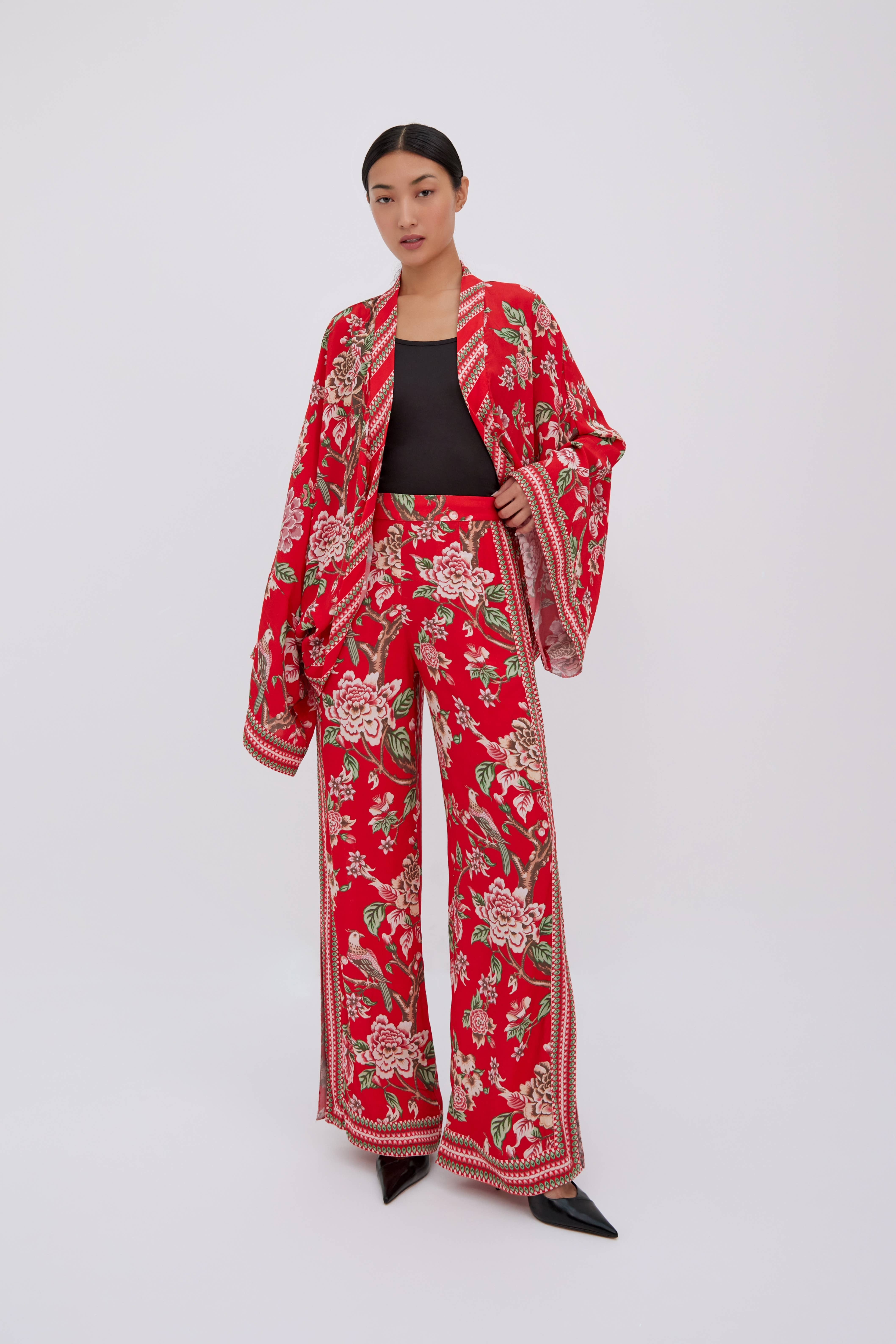 A beautiful Frida Kahlo-inspired kimono robe for a super price. Perfect as a kimono, robe, or kaftan. Made from super comfy lightweight cotton cambric so treat yourself to ultimate comfort whether you are simply winding up at night, getting ready for the morning, or just cozying up in your lounge to binge-watch a move on Netflix. Key features: Made from 100% cotton cambric. Features bird of paradise-inspired hand screen printed cotton fabric. Designed in Australia and Made in India and has been made only in limited quantities. Perfect for any season and the colors will surely make it match with any outfit. Perfect use as a Kimono and Bathrobe. Can be worn as a Kaftan, Cardigan, or as an oversized top over a dress. Comes with a matching cotton tie strap and two pockets. Size - 48 inches (120cm). This is a free-size kimono. We have warehouses both in Australia and India and despatch goods worldwide from both warehouses.