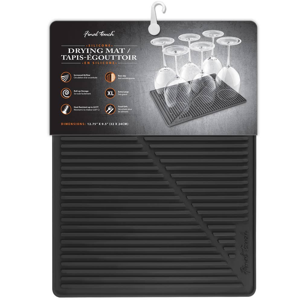 Practical pot dryer. Made of graphite-coloured plastic. With space for plates, glasses and cutlery. With a removable, flexible drip tray. Length: 40 cm, width: 31 cm, height: 12 cm