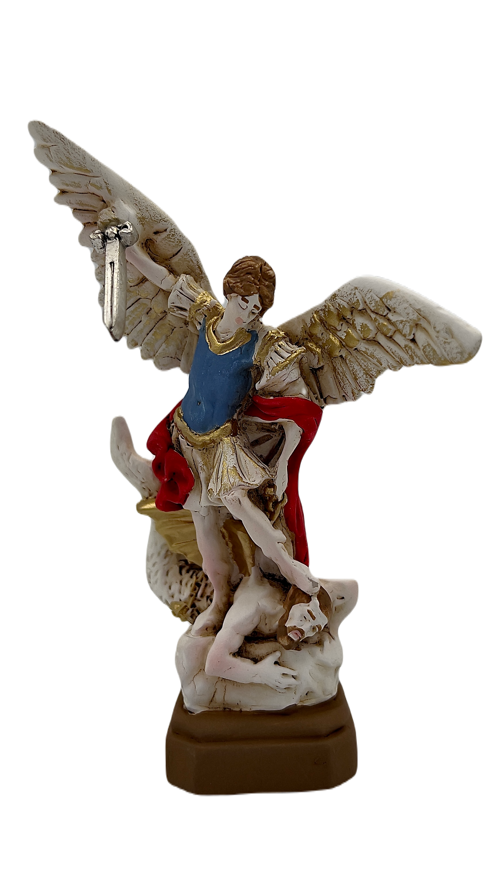 Statue of Saint Michael the Archangel in white resin measuring 13 cm of Italian craftsmanship, made and decorated entirely by hand by expert craftsmen. Made in Italy