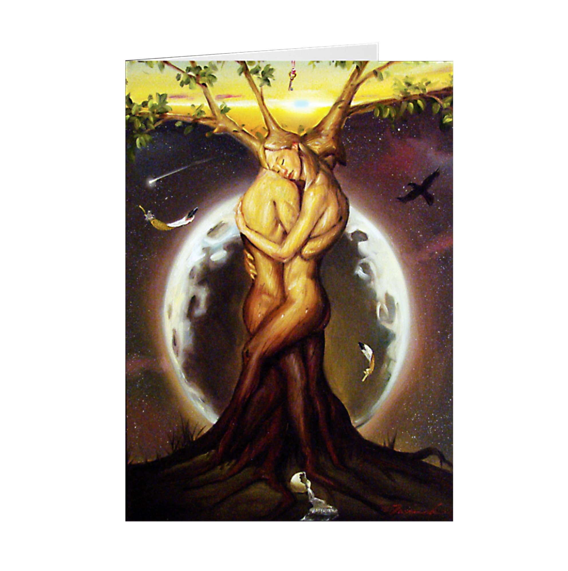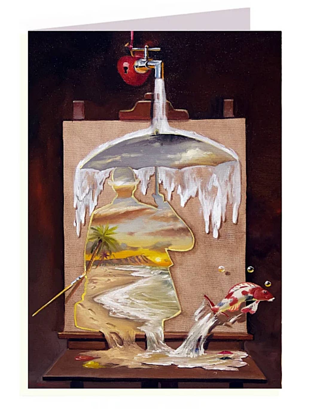 Modern Allegory Greeting Cards implements an original art style by Tarnowski that uses paradoxical, inspirational and whimsical elements to project a positive, encouraging and motivational message to the recipient. "-Life of Riley: Reel In" 5"x7" inch #120 McCoy Silk Stock Cards with White Envelopes are shipped in a polybag (small poly bags hold 10 items, while larger poly bags hold up to 25, depending on the card size) or a box depending on the quantity. Shipping Method: Standard.