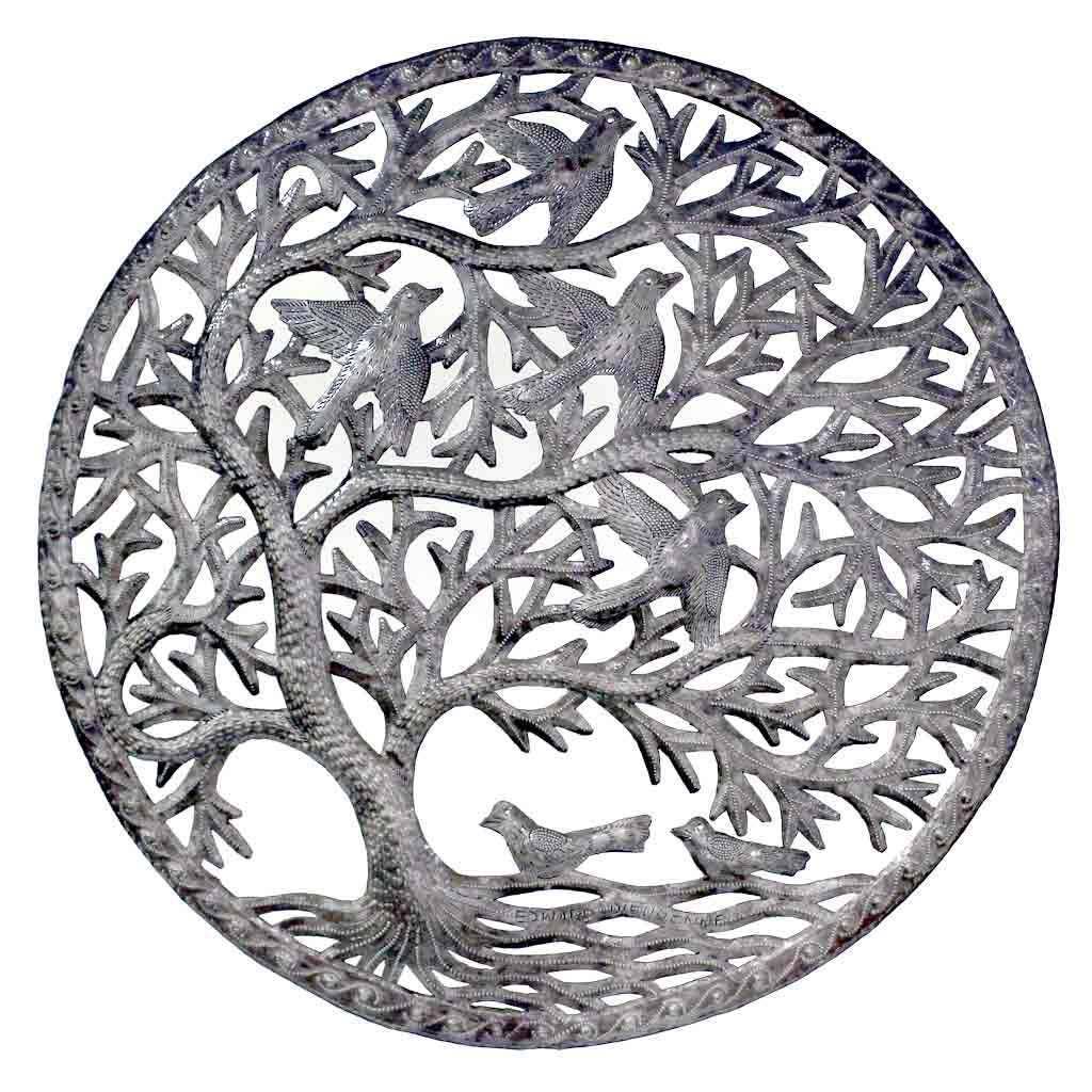 24" Double Tree of Life Haitian Metal Drum Wall Art