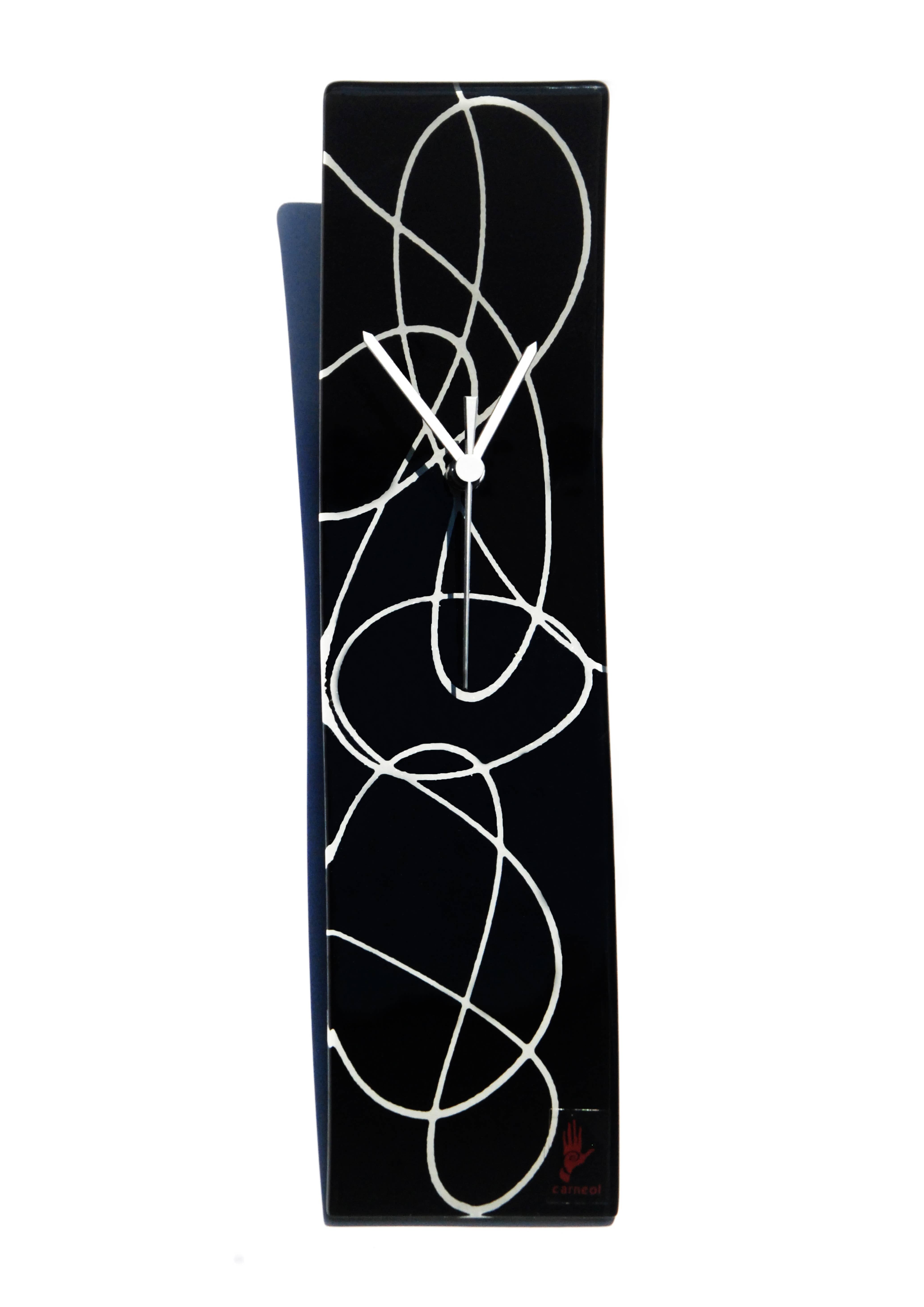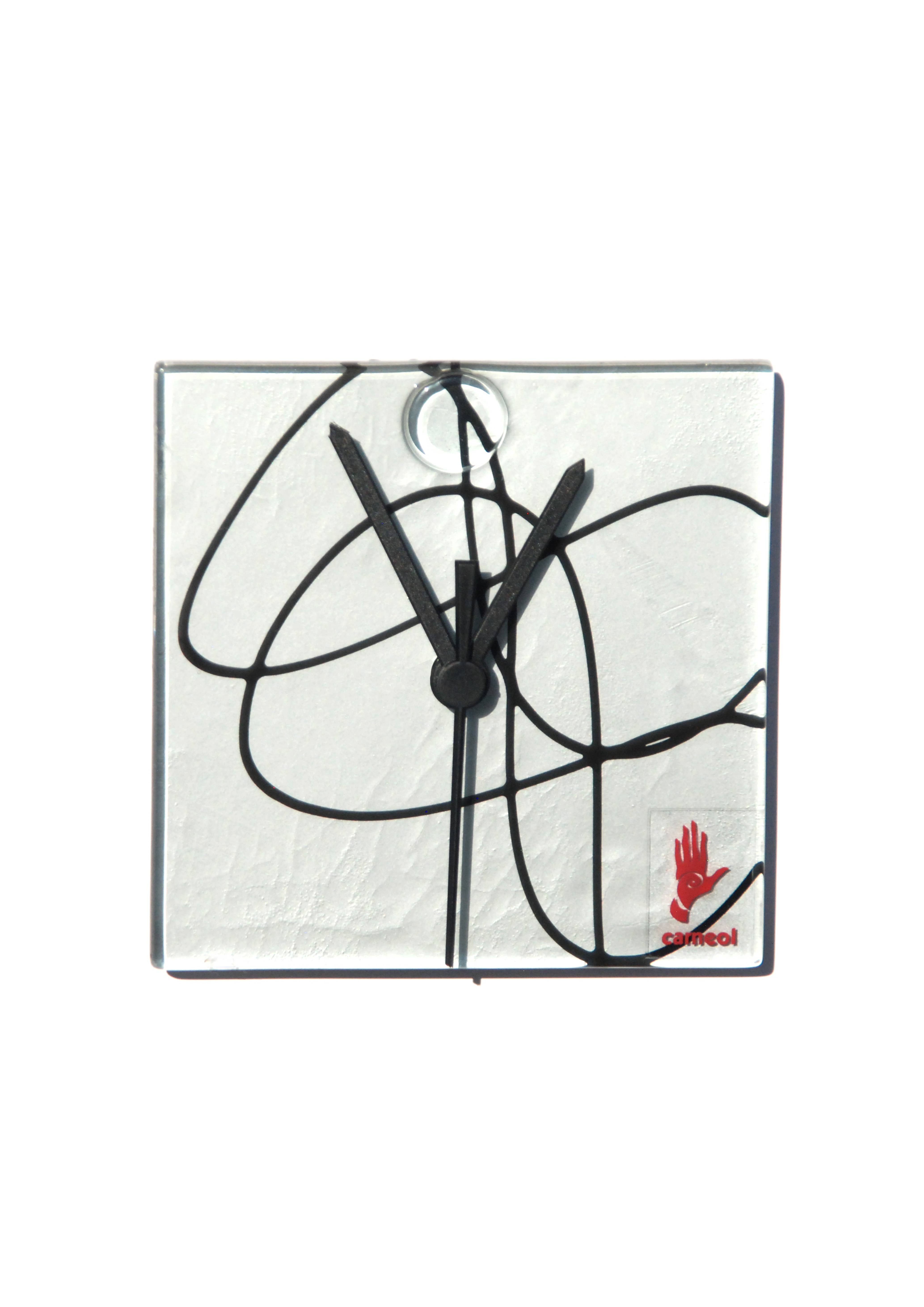 Immerse your living space in the artistic sophistication of the Geo Black-White Wall Clock by CARNEOL GLASS. This 13x13 cm clock is a blend of unique design and practical functionality. Each piece is hand-made in Dunakeszi, Hungary, using the 'fusing' and 'casting' glass manufacturing techniques. This results in a truly unique, artistic object that adds a touch of luxury and cheerfulness to your home. With meticulous attention to every detail, this clock not only tells the time but also tells a story of craftsmanship and passion.