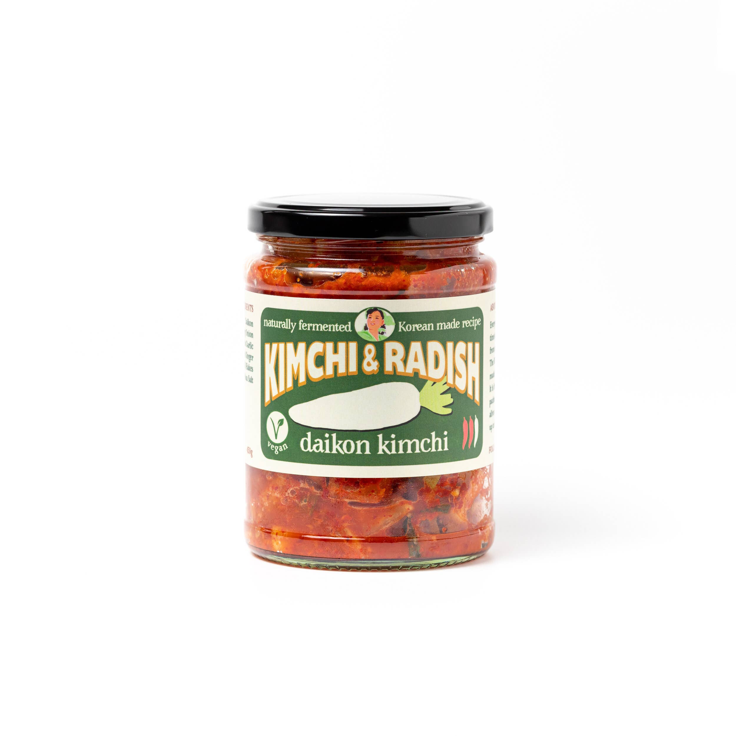 Traditional Kimchi (Family Recipe): Using a family recipe passed down for generations, this product is steeped in authenticity. It has a medium to hot spice level and full bodied taste popular among customers seeking an authentic culinary journey. As with all our kimchi products, it has high nutritional value and contains the benefits of probiotics which are important to health conscious audiences. (contains fish sauce) 🌶️🌶️ Ingredients : Chinese cabbage, Radish, Daikon, Spring onion, Fresh Garlic, Fresh Ginger, Korean chili flakes (gochugaru), sea salt, FISH SAUCE (anchovy based). 450G