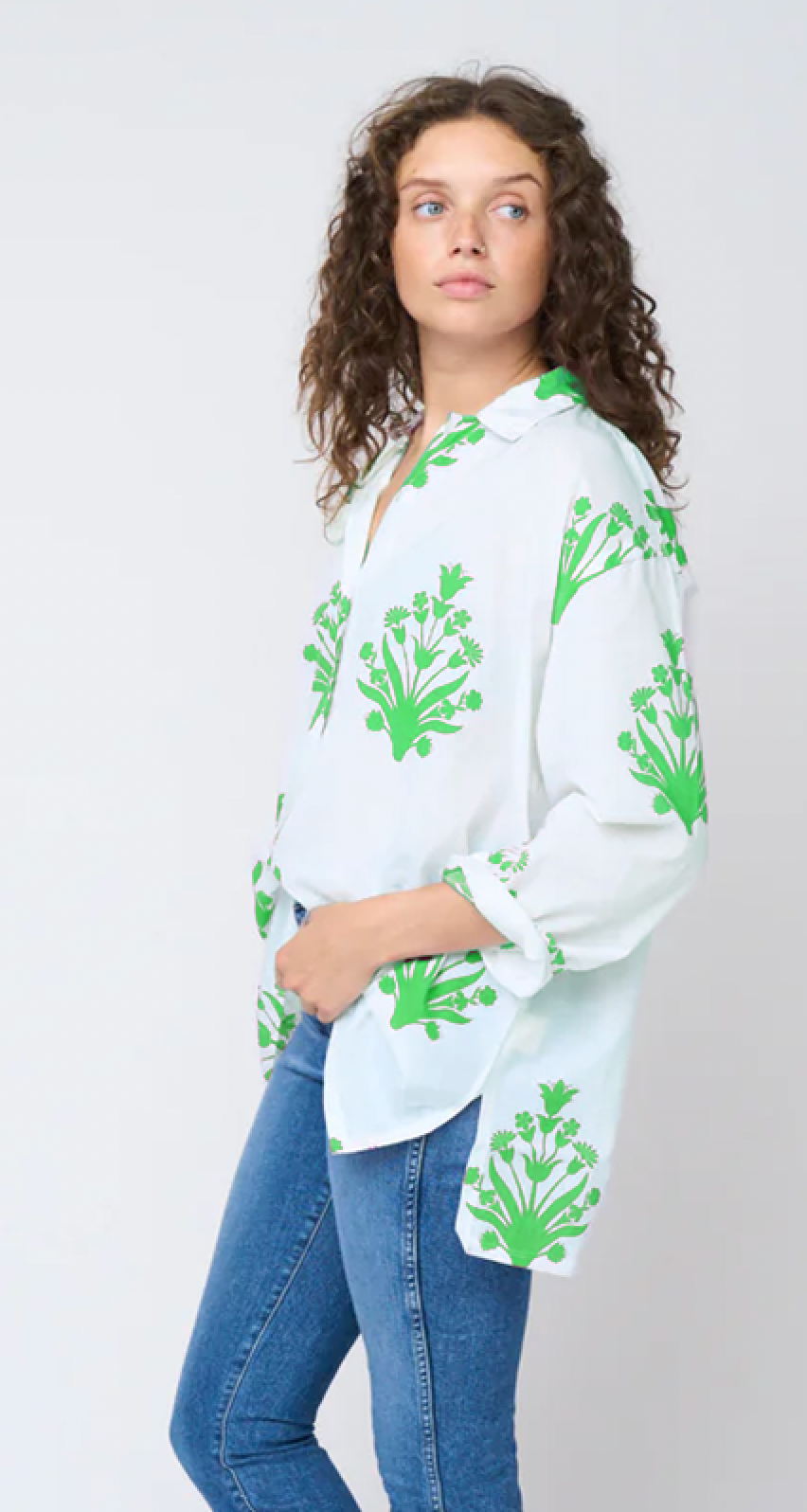 The good boyfriend long sleeve button down shirt is a confident, comfortable, and effortlessly cool wardrobe staple. With its relaxed, modern fit, and casual silhouette, the good boyfriend oxford shirt offers endless styling options and ways to wear this eco-friendly, sustainable, timeless favorite. Alexa is 5'9", wearing size L/XL. Cameron is 5'8", wearing size S/M. * Organic cotton * Length Shoulder to Hem S/M 28", L/XL 30", 1X/2X 32" * Chest measurement: S/M 22", L/XL 24", 1X/2X 28" * Indigo dyed * Relaxed fit, slightly oversized * Center back box pleat * Hand loomed & block printed * RE/Good- utilized excess fabrics * Machine wash * Made in India