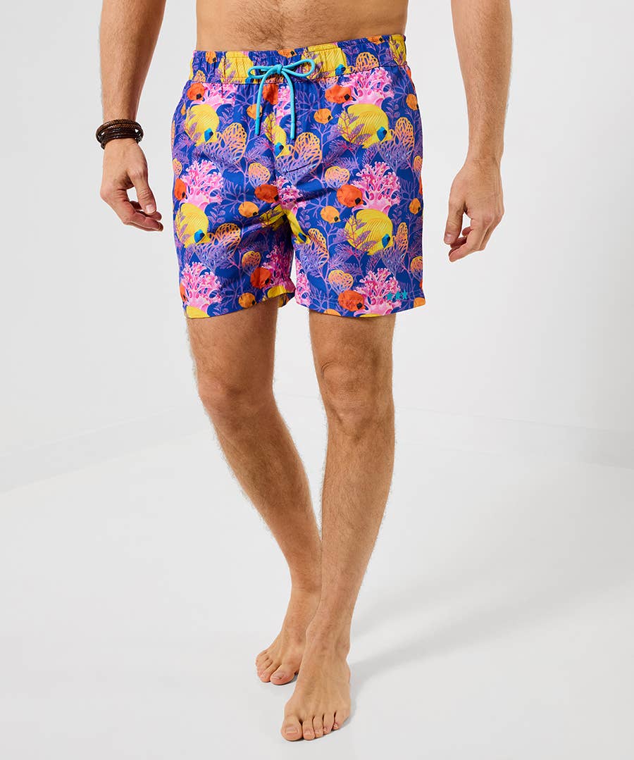 My Dads the coolest... Father and son matching swim shorts, perfect gift for dad or son. Versatile hybrid shorts for playground to beach. These playful prints made from quick-dry and 4-way stretch fabric and Mosmann signature sunglass zipper puller. Super-soft internal mesh lining, elasticated waistband with drawstring, self drain mesh-lined pockets. European cut for a tailored look.