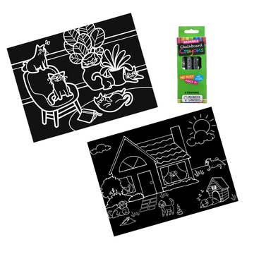 Fun for the Christmas stocking or as a little gift to make this holiday a little extra fun. Each kit includes 2 of our 5x7 chalkboard coloring cards and a 4 pack of our dust-free chalkboard crayons. One card has a Christmas tree that they can color and decorate. The other has a space for them to draw a picture or write a note for Santa. The back of both cards are blank so that they can doodle and draw anything they want. All chalkboard mats feature: Double sided (one side printed, the other plain) Easy to erase with a cleaning spray, baby wipe or damp cloth Can be used with chalk, chalk crayons (ours are great), or chalk markers Can handle "kid" treatment The mat and crayons are Made in China but we print and assemble them right in our office in Michigan. Back to School, Chalk Crayon, Marker, Art Supply, Educational Toy, Placemat, Coloring, Alphabet, Numbers