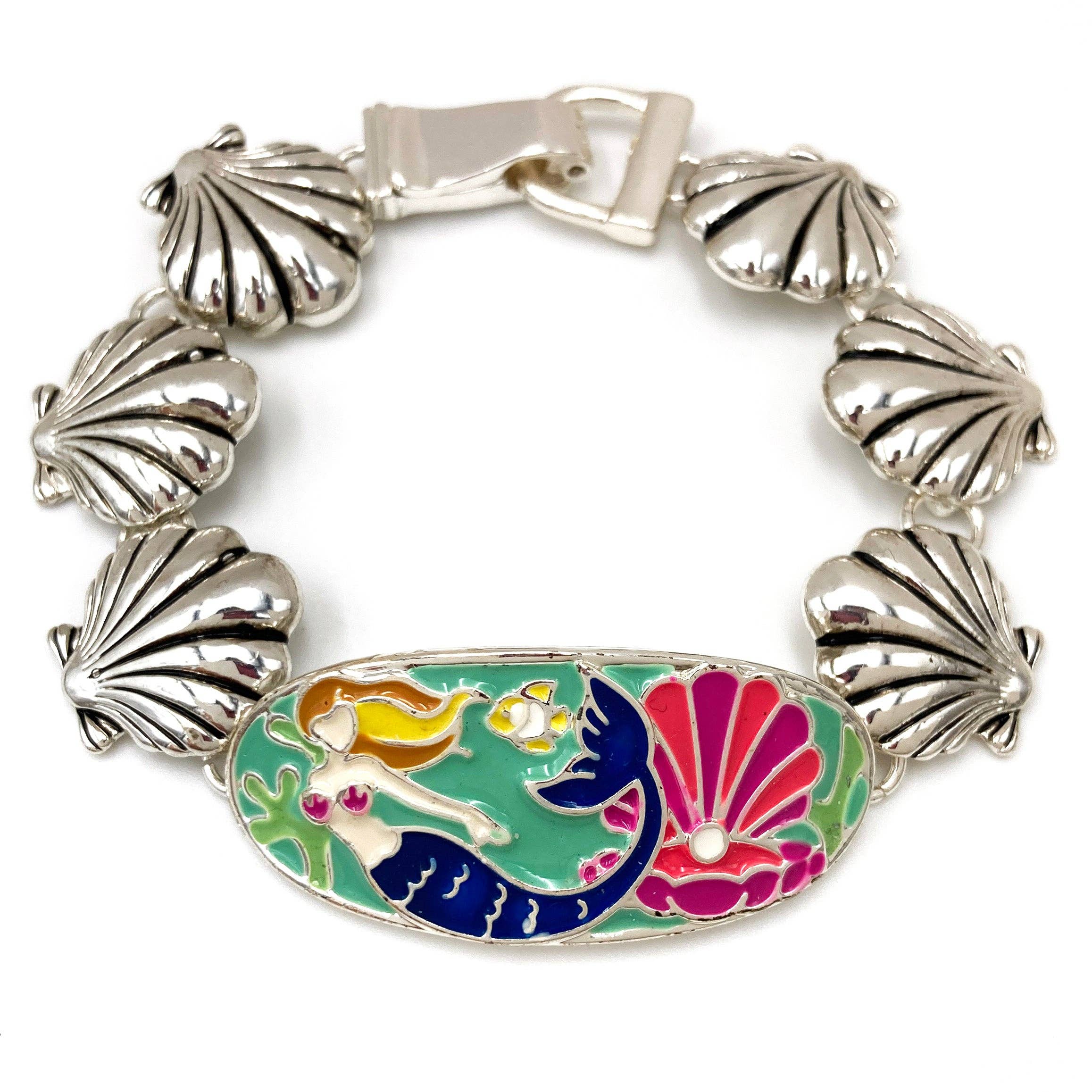 Cute horseshoe and pearl charms hanging from beautiful multi tone stretch bracelet with horse shape cutout. Embellished with gold, topaz, silver, copper charms beads. Stretch to fit most wrists. 3 x 2 inches. Approximately 0.60 ounce. Lead and nickel compliant. Only from Lunar Deer.