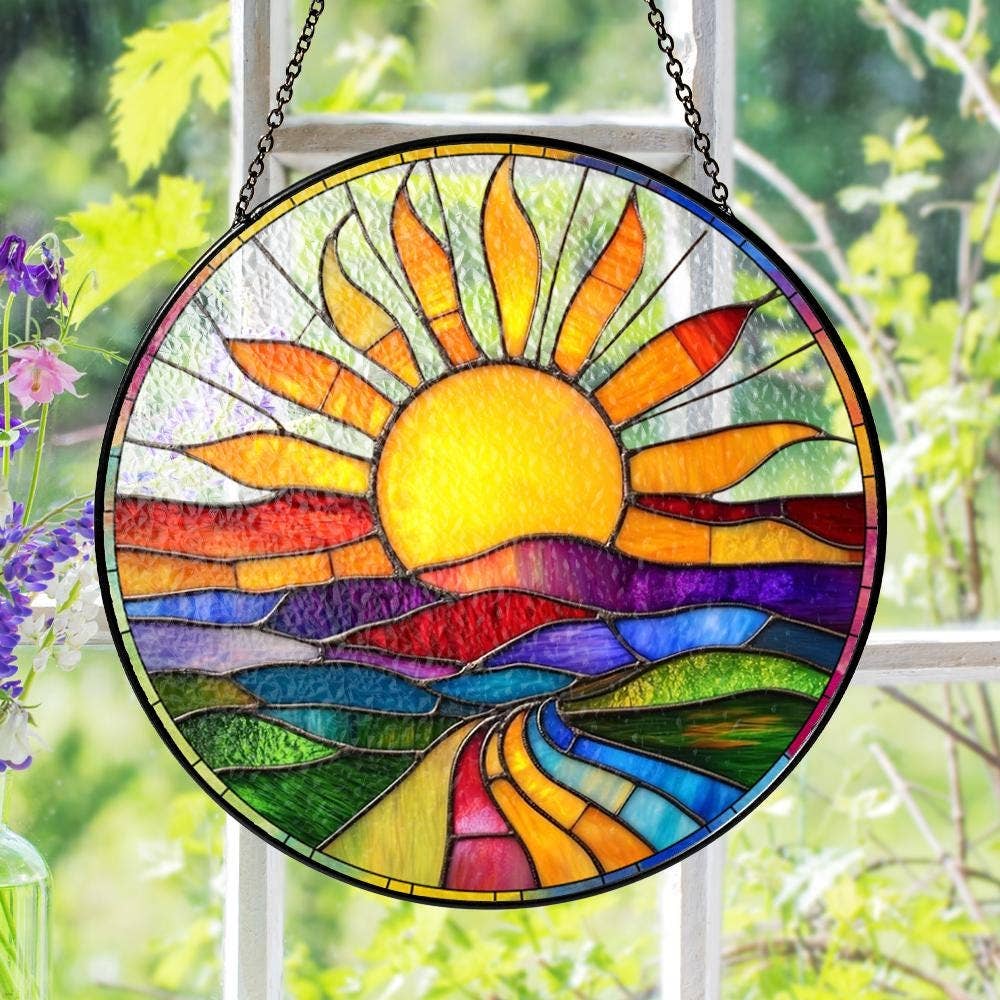Colorful Tree of Life Suncatchers, Birthday Gift for Mom Stained Glass Suncatcher for Window Hanging - Material: 0.5-cm glass - Reinforced zinc strips along the outer edge - Black metal chain and a sucker cup for easy installation - Available in 6 sizes: 3.5 inches, 4 inches, 6 inches, 7.8 inches, 9.8 inches, and 11.8 inches to perfectly complement your space. - Easy to clean surface remains looking fresh and new regardless of time - Vibrant, long-lasting prints with special matte coating ensure the colors stay vivid and vibrant, even with years of exposure to sunlight. - Carefully packaged with foam If you have any questions, please feel free to contact us