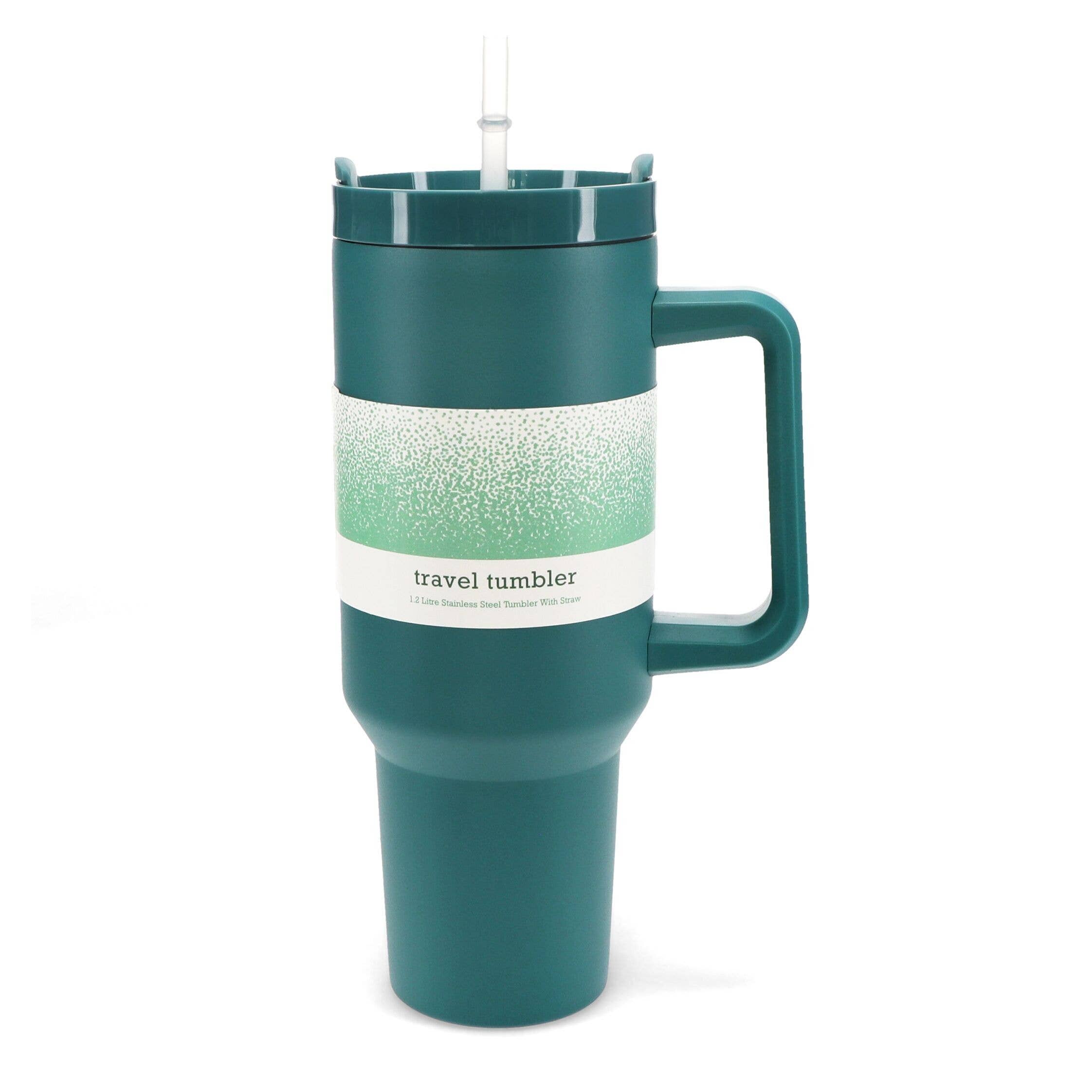 Stainless steel travel cup in mint green, with soft-touch rubber-like coating. Perfect for enjoying hot or cold drinks on the go. • Capacity: 350ml • Drinking hole in the lid allows for direct sipping or use of straws Care guidance: • Hand wash only. Not dishwasher safe.