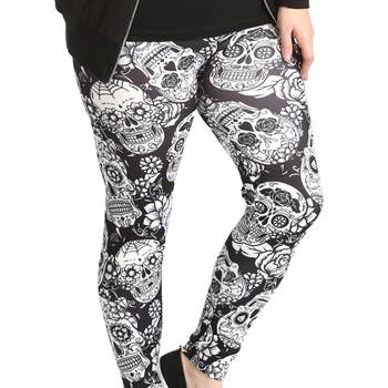 Spu:QZ17477HT Pants length: nine-point pants Style: petite pants Function: Slim fit Pattern: skull print Pants type: tight Size S M L XL 2XL 3XL UK 6 8