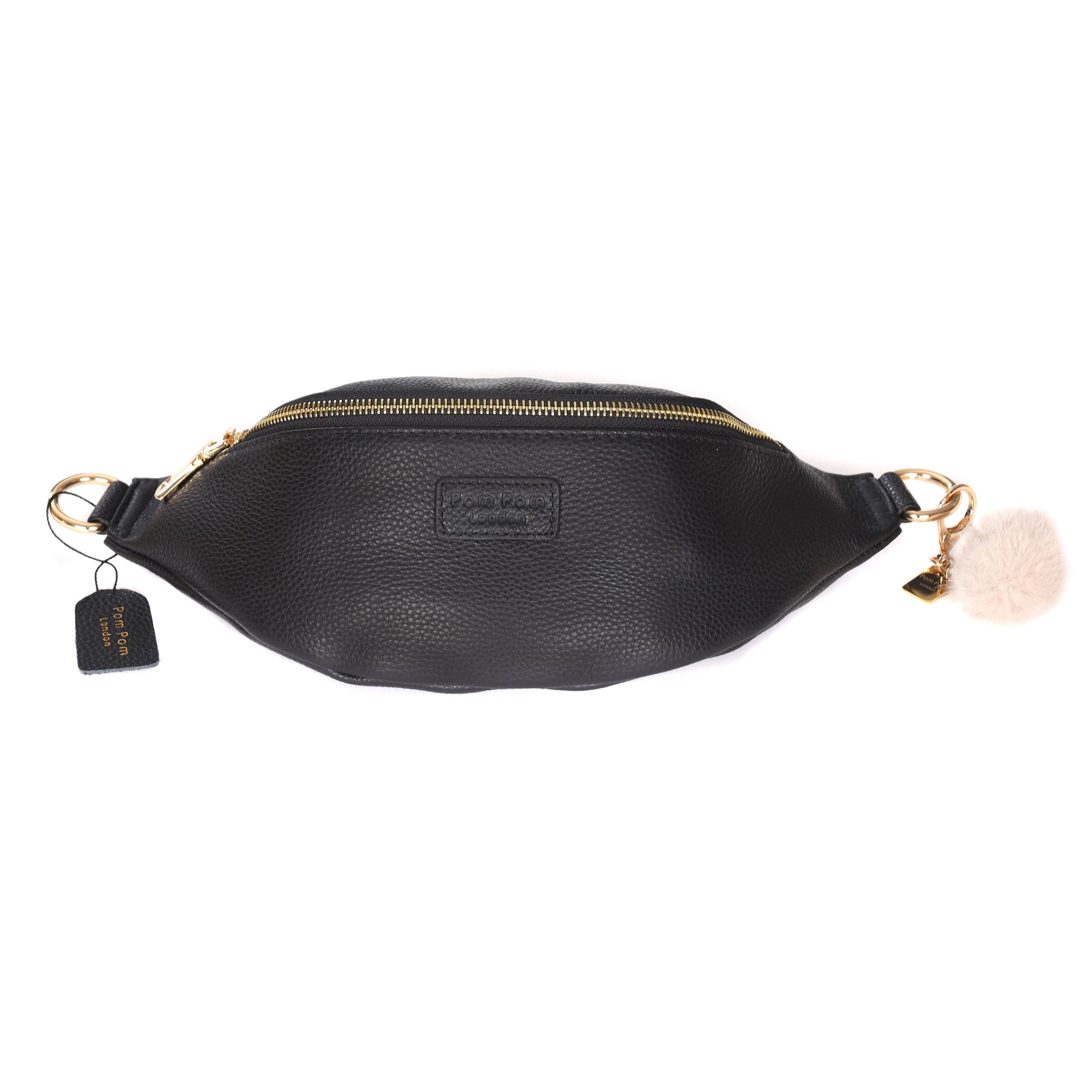 LARGE BLACK 39CM SEED LEATHER FANNY BAG