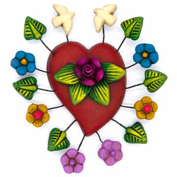 Mexican Painted Sun and Moon - Small This sunny and vibrant wall plaque will make you feel over the moon! It has been beautifully hand painted in a bright style traditional to Xalitla, a region of Guerrero, Mexico. A striking glaze adds to the bold design. It has two holes which can be used to add a hanging loop for an easy display. Specifications: 13cm ø Origin: Mexico