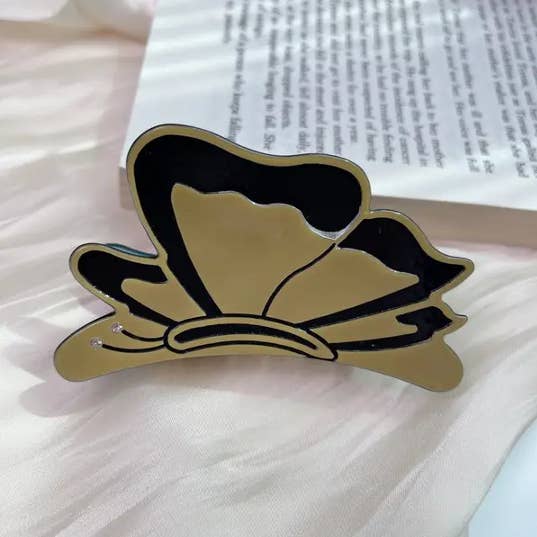 Material: Plastic/Resin Style: Simulated butterfly clip Processing technology: Handmade Size: 2.83in*2.56in Weight: 23g Hairpin category: Clip Popular elements: Butterfly Style: Fresh Style category: Fresh and sweet Applicable people: Women Popular elements category: Animals