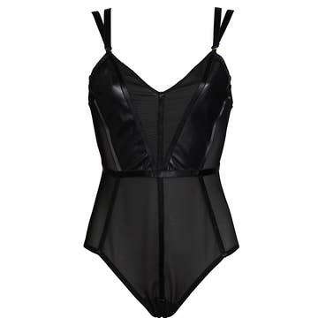 The Lucie is a vintage inspired teddy with a lace detailing along the neckline and flounce at the leg opening Main fabric is a lace Lining fabric is a soft mesh or power net Self fabric and lining are 90% Nylon, 10% Spandex