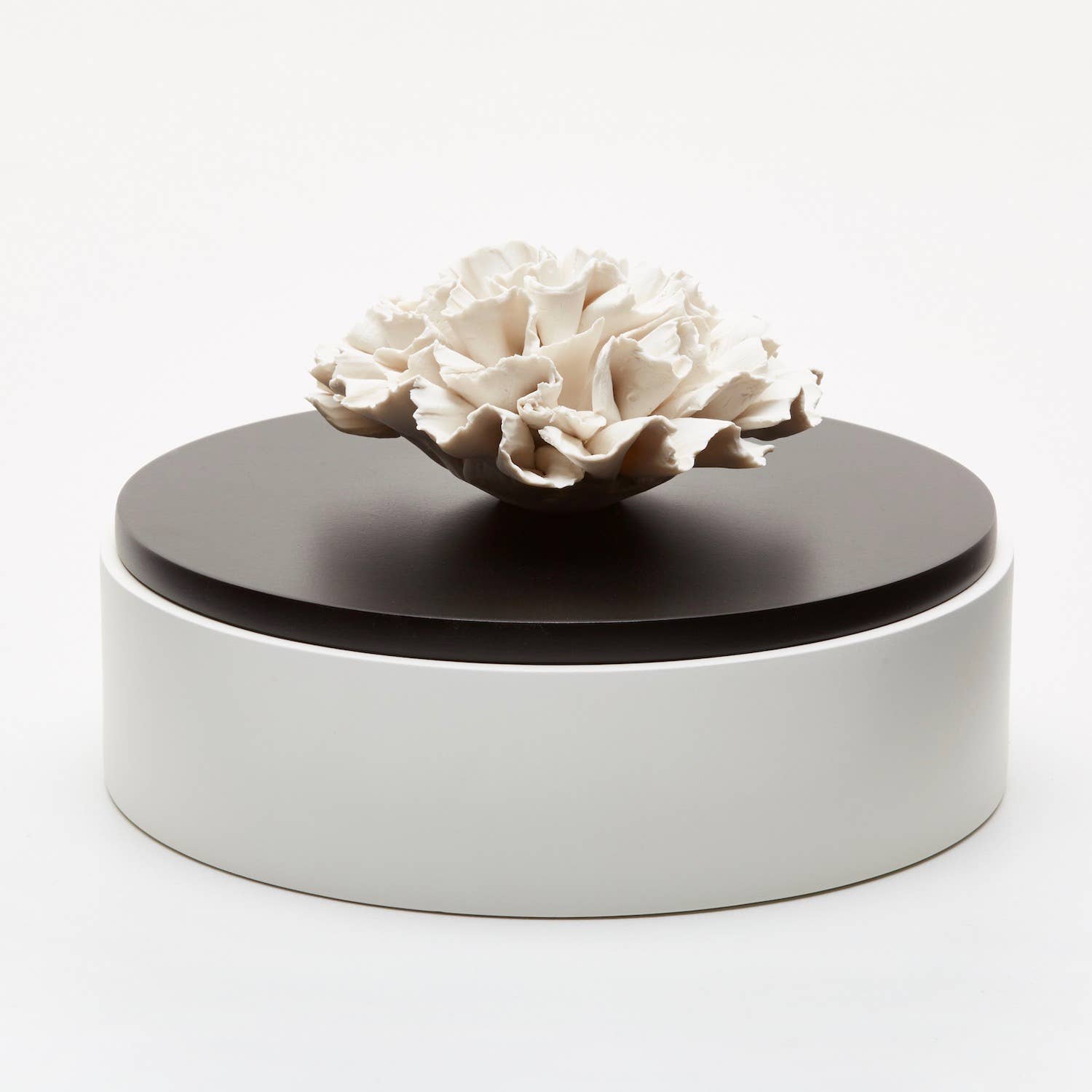 Ceramic fragrance diffuser with porcelain flower. The pebble-shaped base is a reservoir into which up to 100 ml of home fragrance is poured. The porcelain flower is connected to a cotton wick that is placed in the reservoir so that the fragrance is absorbed by the wick and the flower. The diffusion is gentle and natural. This product requires neither electricity nor batteries. Tip: you can replace the fragrance with essential oils. In this case, pour 3 or 4 drops of essential oil directly onto the flower to let the scent diffuse. Repeat every 4 days. This product is sold unscented. Its originality makes it an ideal gift for any occasion throughout the year, such as birthdays, parties, or weddings. This product will make a perfect decoration on a table or shelf. This porcelain diffuser does not require an electrical power source or batteries and can be placed anywhere in the house! Secure transport packaging.