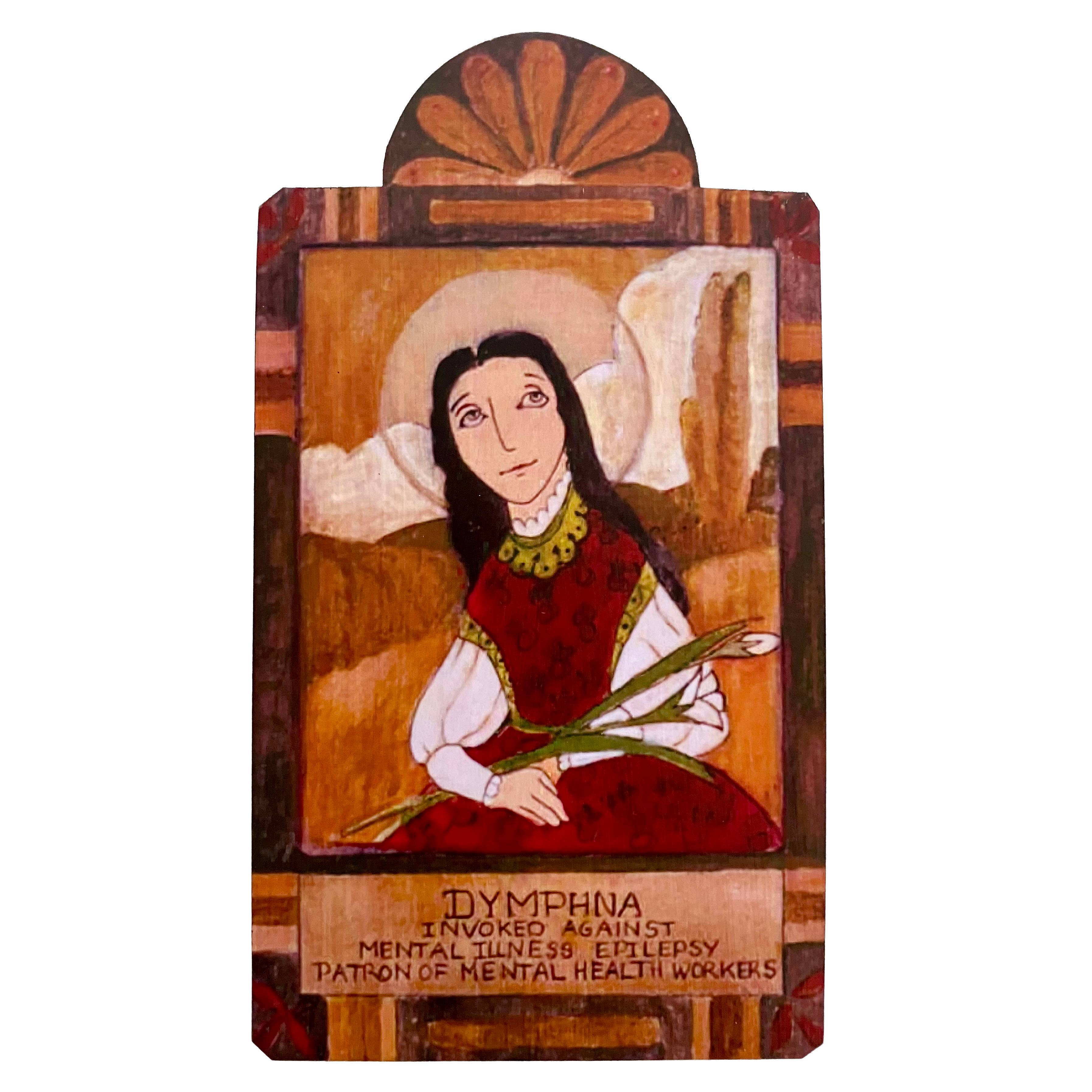 San Antonio Retablo Finder of Lost Objects and Animals, Patron of Worthy Husbands, Women who Want Children, Orphans, and Miracles Pocket - 1 1/2" x 3" Ornament - 2 1/2" x 5" Small - 3 1/2" x 7" Large - 5 1/2" x 11" San Antonio Retablo Finder of Lost Objects and Animals, Patron of Worthy Husbands, Women who Want Children, Orphans and Miracles Antonio was born in Portugal in 1195 and died in 1231 at the age of 35. He became a Franciscan monk trained by San Francisco himself. He was a very charismatic preacher bringing even the biggest sinner into the light. He was said to have radiated an unusual holiness. He performed many miracles. A novice once borrowed his prayer book without asking but returned it after a "fearful apparition" overcame him. This is why San Antonio is patron of lost objects. "O, Holy San Antonio, your love of god and charity for all his creatures made you worthy on earth to possess miraculous powers. I humbly ask of you to whisper my petition (you request) into the ear of the infant Jesus whom you so loved. My gratitude will be always yours." Printed from Lynn Garlick's Originals. Check out our displays for our pocket saints. The boxes come in 3 sizes housing 4 of each saint with the name and patronage engraved on a board below the saint. The 24 pocket box is shown here. To purchase, go to the Displays in Collections.