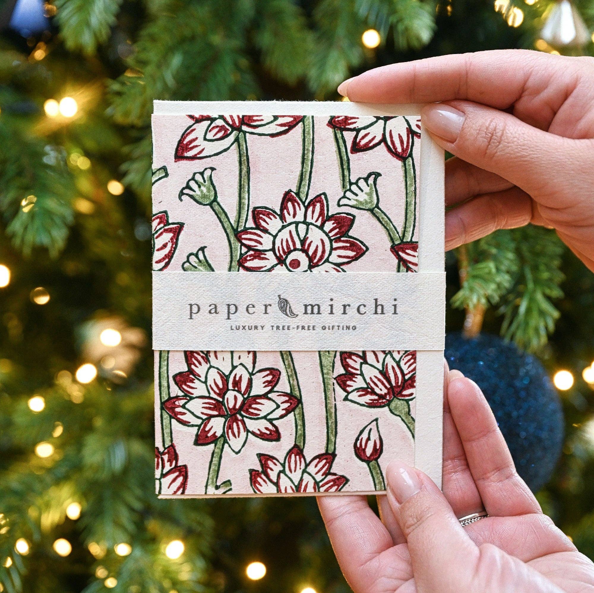 New Festive Collection! Our range of luxury block printed greeting cards is a real delight for any stationery lover. Each card is hand block printed by a skilled artisan on luxurious tree-free 250gsm cotton cardstock and is accompanied by a luxury peel and seal envelope which is hand block printed in the matching on the reverse for understated appeal. No two cards are the same, making them truly unique. The card and envelope are neatly held together with a tree-free belly band. The card can be easily framed to become a beautiful ornament or keepsake. They are blank inside. Size A6. A6 (14.8 x 10.5cm). 100% recycled cotton paper.