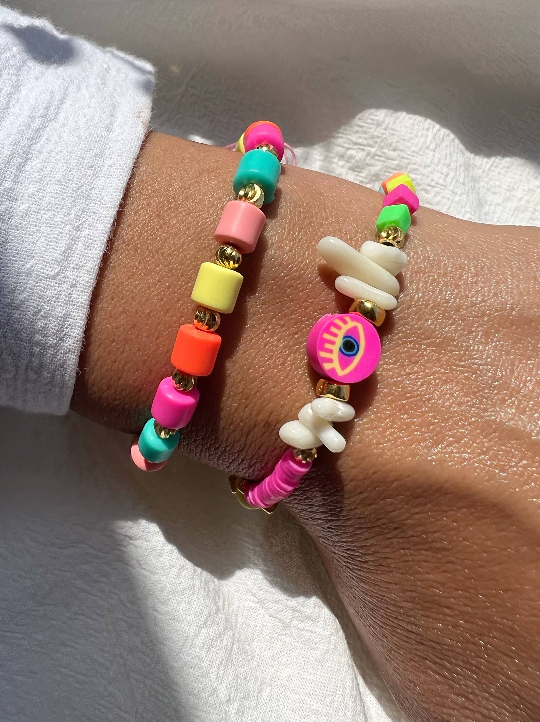 Two Different Necklaces for Women that are made from Stainless Steel Chains and different materials and create a unique summer set. The short Necklace has five enamel drops in orange color at the center of it, purple beads, gold metal parts and freshwater pearls that create the final creation. The longer necklace has a special evil eye with colorful enamel that is passed through a stainless steel chain in gold color. You can choose and wear these necklaces separetely or as a set as well. Find it only at Christina Christi Store. MATERIALS - Chains are made from Gold Plated Stainless Steel. - Metal Parts. - Enamel Beads. - Glass Beads. - Freshwater Pearls. DIMENSIONS - Short Drop Necklace, has length 41 cm (16.1'') - Long Evil Eye Necklace has length 45 cm (17.7'') - Adjustable Necklaces. - If you would like to have more or less cm to your necklaces, you can inform me with a message before your order. PROTECTION - Protect them from water, parfumes, hair and body lotion to keep them