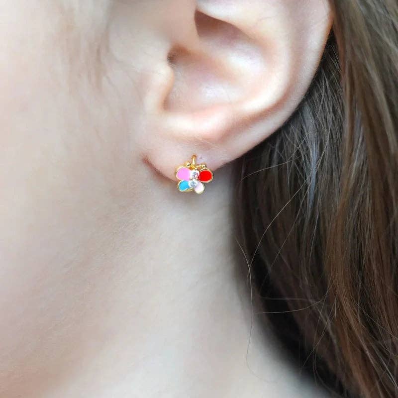 Sterling silver white pearl button earrings and beautiful sparkling accents - precious and dainty! These earrings have screw backs that are so nice for children so they stay secure and protect the backs of their little ears. Earrings include an extra hypo-allergenic, anti-tarnish finish to keep your pieces sparkling beautifully for years and come in darling black velvet heart gift box! measure 7mm in diameter)