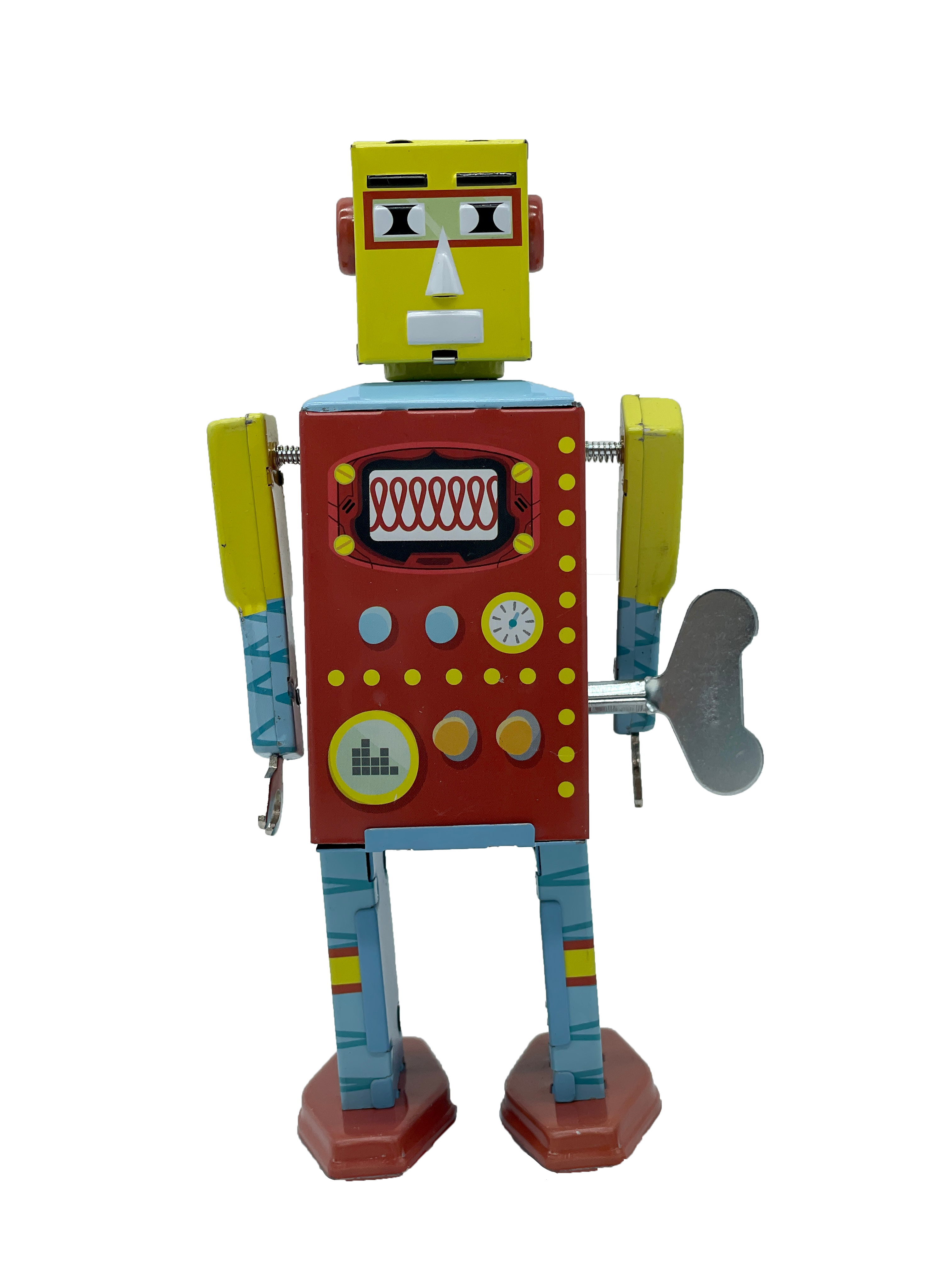Small-small-mini! The little robot girl is just 6.5 cm high. If you wind it up, it marches forward purposefully. The wind-up button is firmly attached to the robot, so it won't get lost. The small robot is packed in a display box for hanging up. Dimensions: 5 x 2.5 x 6.5 cm, made in China This item is not a toy and is not suitable for children under the age of 14. HS code: 9503004990 Size: 5 x 9.5 x 2.5 cm