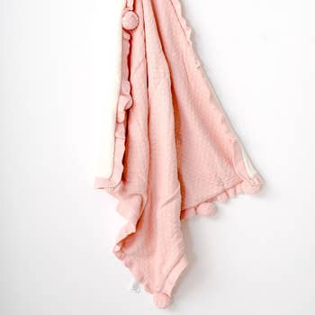 This luxuriously ribbed look blanket is like being wrapped in a cloud made of cotton candy. Soft fabric, knit look and the perfect color—everything about this piece is precious.30in x 40in, pink color, 100% cotton, machine wash, core season.