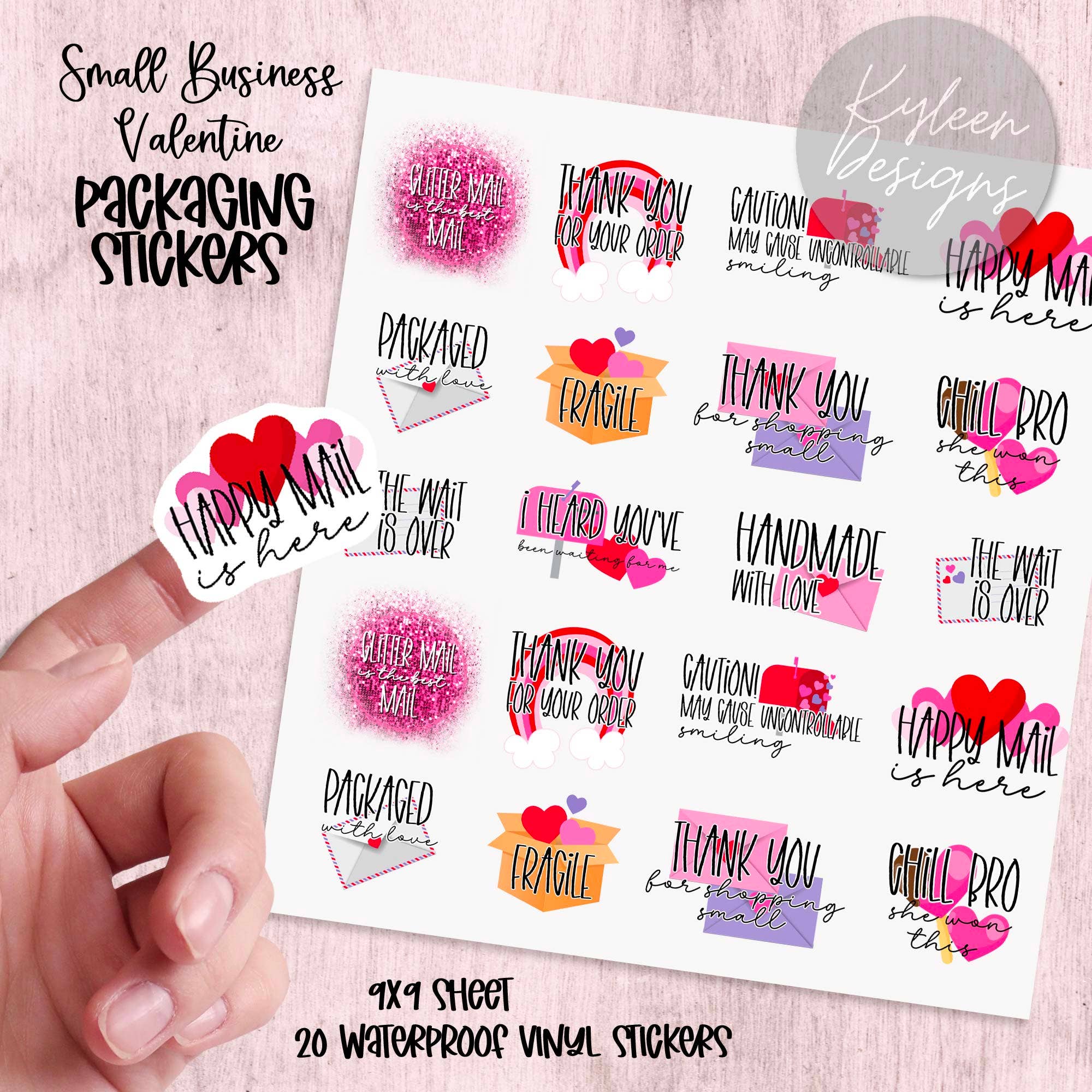 Bright Small Business Packaging Stickers These stickers are printed on a commercial printer using the highest quality ink and vinyl. 9x9 sheet, 20 stickers per sheet These are ready to use and require no prepping. They are also waterproof & smudge proof, however they cannot come in to contact with alcohol. Tat 1-2 weeks