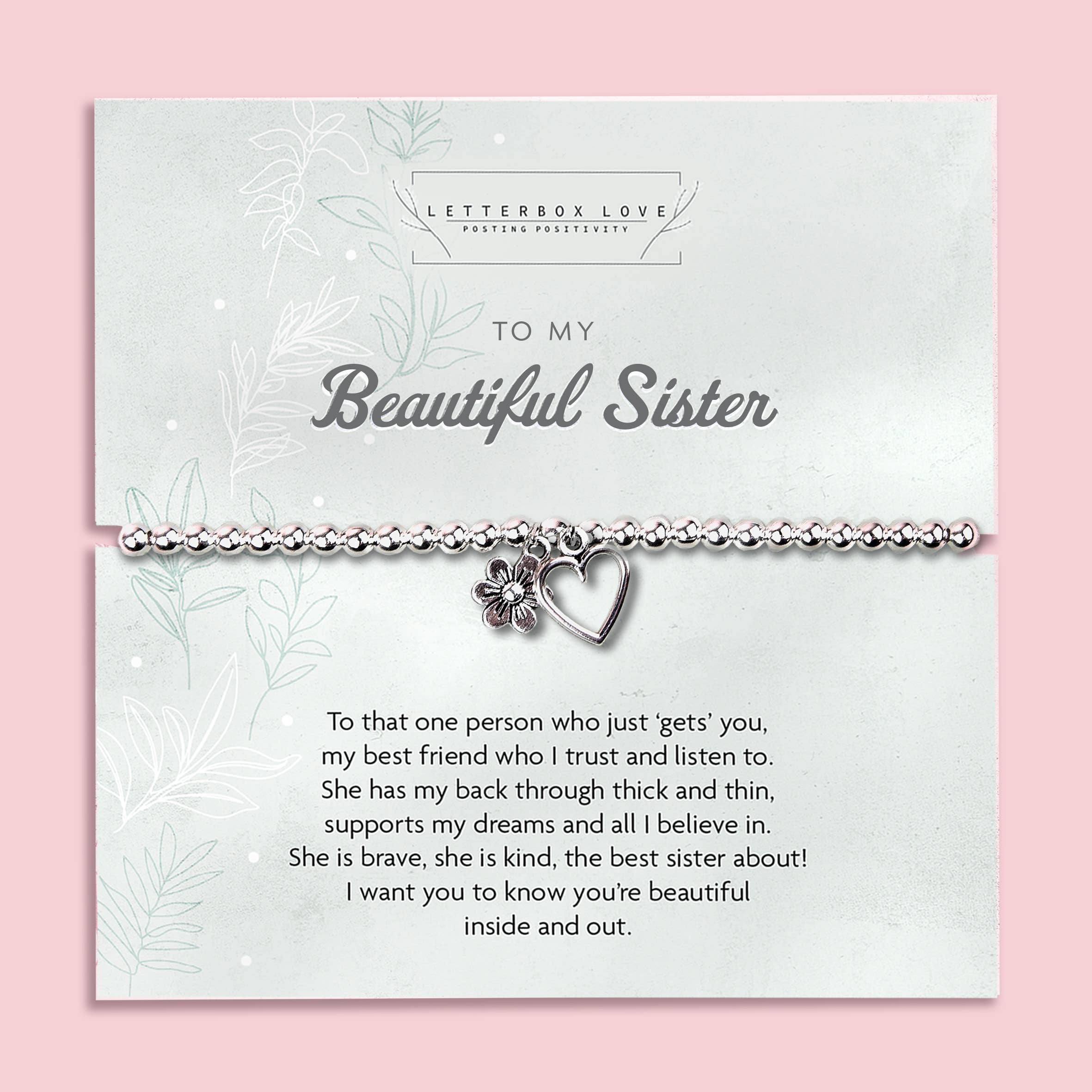 Celebrate a truly special friendship with this meaningful bracelet gift. Featuring a silver-plated beaded design with a heart and flower charm, this bracelet is mounted on a heartfelt friendship poem card and presented in a premium white gift box. A beautiful keepsake for birthdays, thank yous, or simply to remind them how loved they are. Perfect for: • Gifts for best friends or close companions • Birthday, thank you or just because gifts • Gift shops, lifestyle boutiques and jewellery displays • Letterbox-friendly bracelet gifts under £20 • Keepsake jewellery for friendship collections Features & Benefits: • Elasticated silver-plated beaded bracelet • Includes heart and flower charm • Mounted on a printed “Fabulous Friend” poem card • Presented in a luxury white gift box – ready to gift • One size fits most wrists • Lightweight, meaningful and beautifully packaged