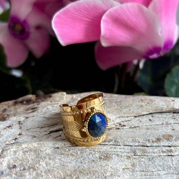 18ct Gold Plated Faceted Natural Stone Wide Band Ring - Available in Two Options