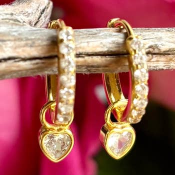 Wholesale Crystal Huggie Hoop Earrings 18K Gold Vermeil | Sterling Silver CZ Crystals 12mm Hoop Hinge Closure Nickel Free Hypoallergenic Ships from CA