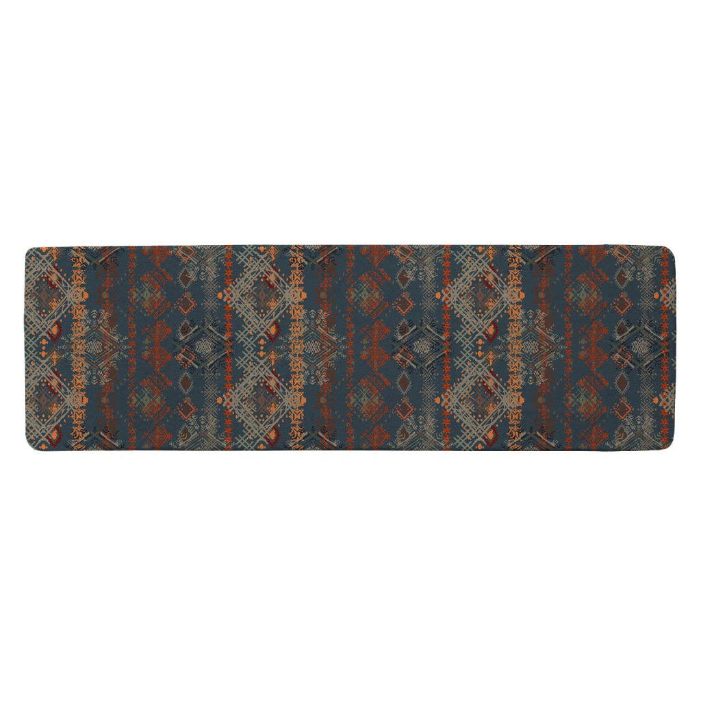 Brighten up your home with the Mexican Flowers non-slip floor runner by Excelsa Living, measuring 45x75 cm. Lively and vibrant, this floor rug is part of the Mexican Flowers collection and is crafted with jacquard weaving, where interwoven dyed threads create a charming floral pattern inspired by cheerful Mexican folk motifs. During the weaving process, acrylic colors are added to the chenille yarns, enhancing the richness, depth, and saturation of the texture. The runner is composed of 41% polyester, 37% acrylic chenille, and 22% cotton, with a fabric weight of 1020 gsm. It is machine washable at 30°C on a delicate cycle and should not be tumble dried. Its non-slip backing makes it ideal for the kitchen, but it can also be used in entryways, hallways, and living areas to bring color and warmth to any room.