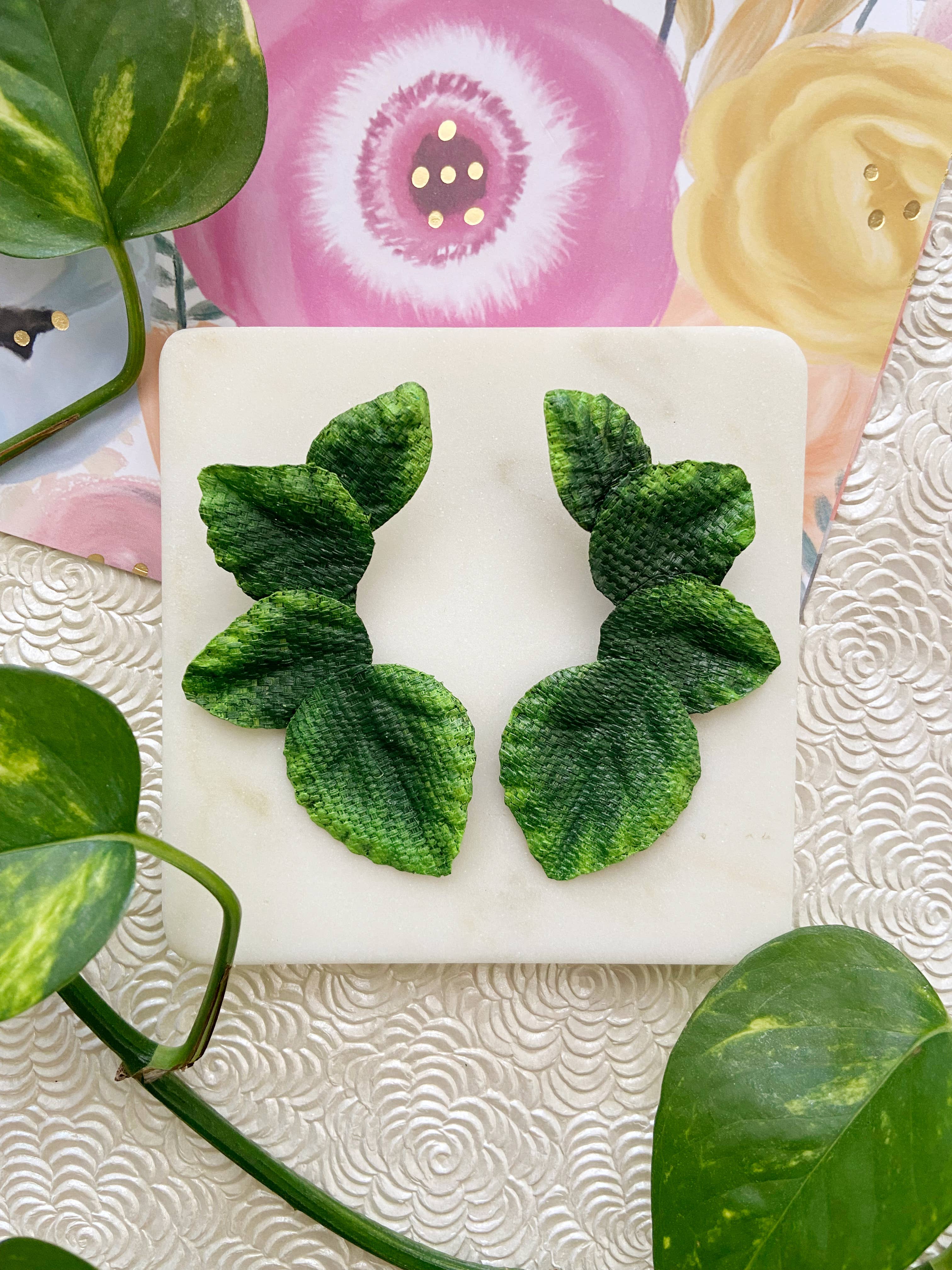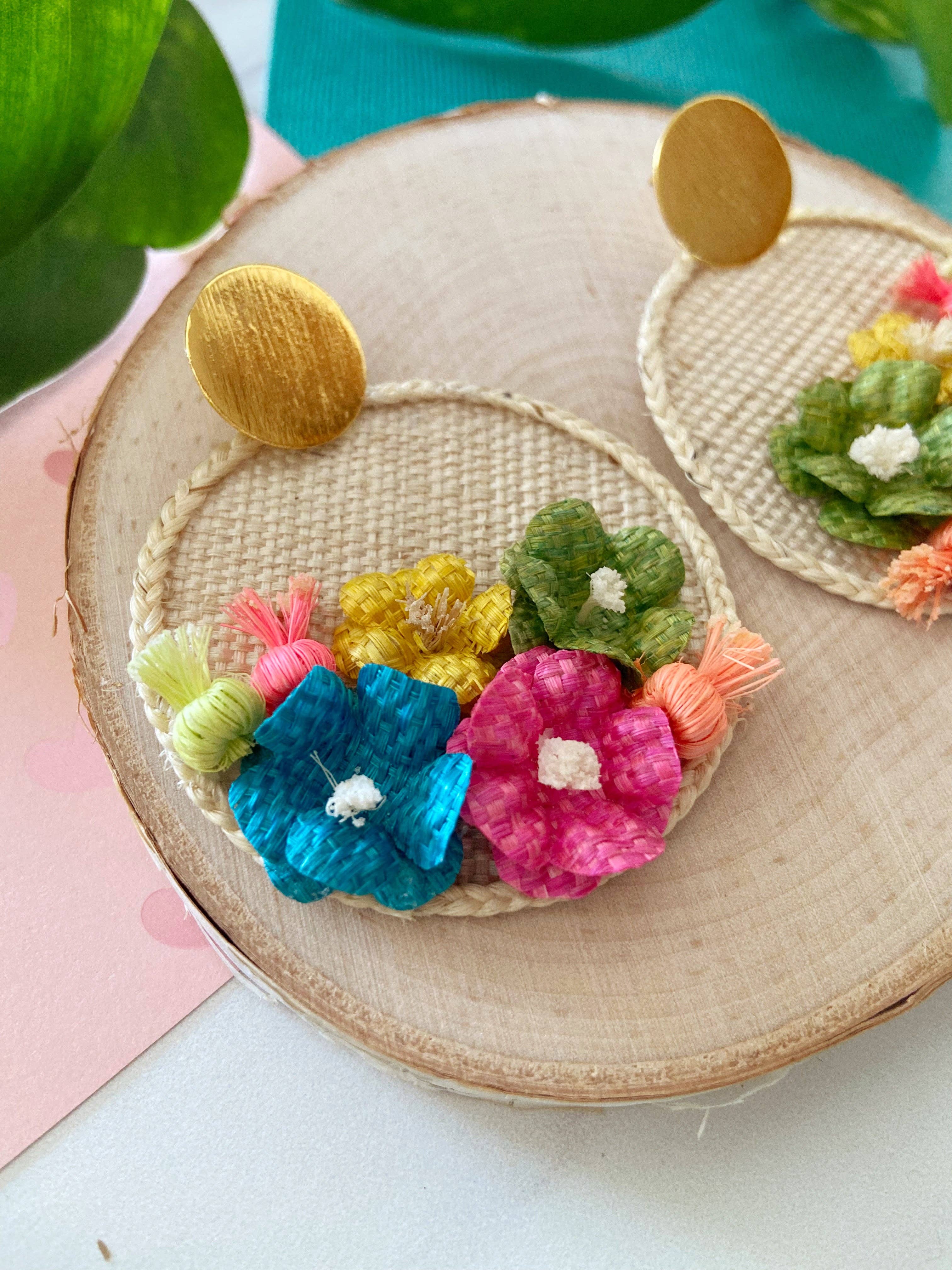 AMAZON Eco-Friendly Earrings These earrings are one of a kind. Its elaborate and elegant design add a beautiful touch of vibrancy to your outfit, elevating your energy and confidence! The earrings are made from fibers of the banana plant by a community of artisanal women. If not used, the banana harvest remains would be otherwise discarded. These earrings are beautifully painted and decorated by hand using natural pigments. These products promote more environmentally, socially and ethically conscious production and consumption. Materials Banana plant natural fiber Recycled gold studs Product Information Handcrafted Lightweight Vegan Cruelty Free