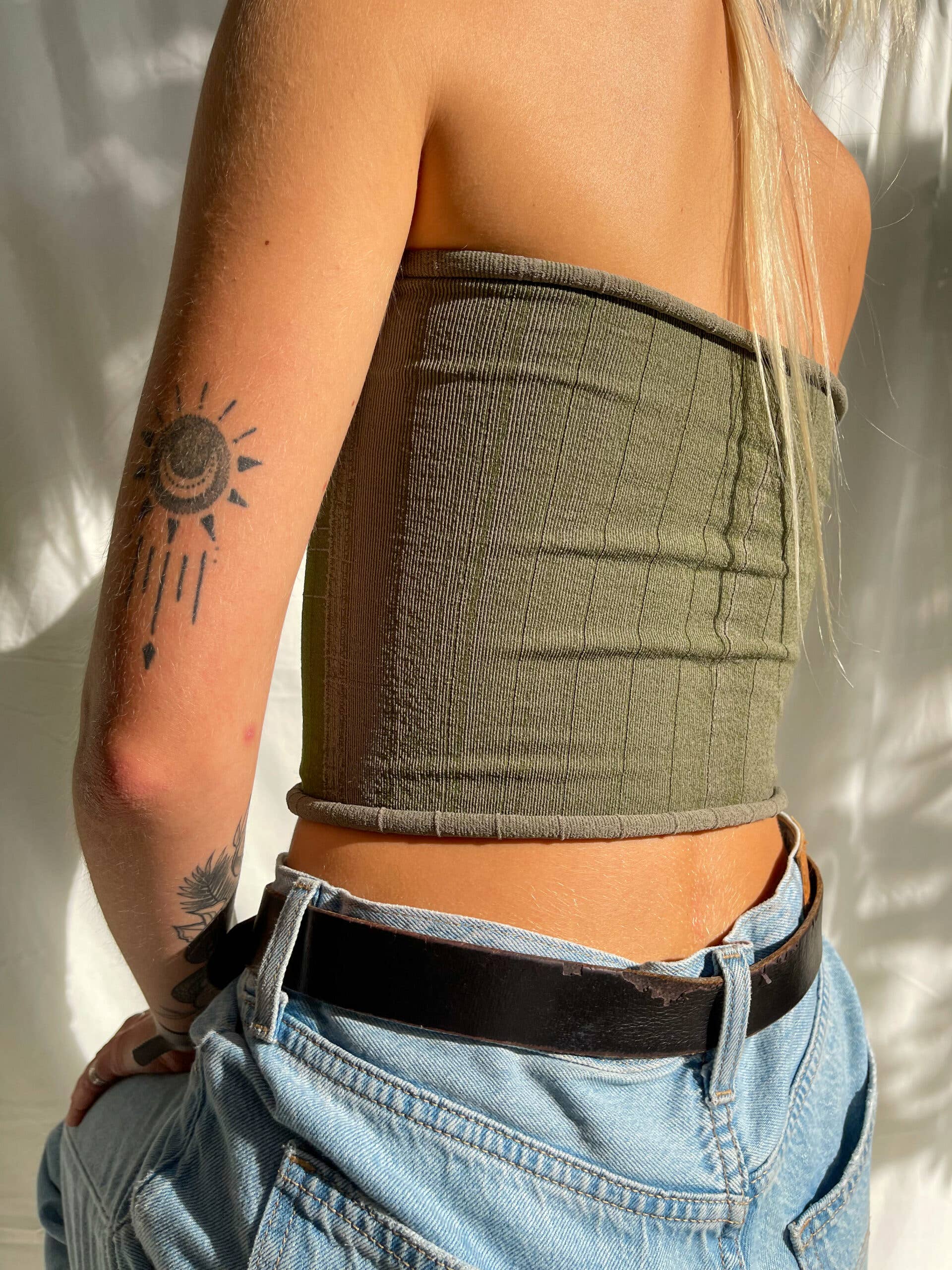 The perfect triangle string bikini top in black rib! Our Coron Bikini Top is designed to give you complete control over how you wear this style; providing adjustability of the cup coverage, strap placement on the back, and strap length. Try tying it one of five ways for a fresh take on this classic style. Features Seamless Double Lined Gold Hardware Adjustable Triangle Cup and Straps Ties Behind the Neck and Back Designed in the USA, made in Bali Italian Lycra made with ECONYL® - 100% Regenerated Nylon. Model is: Wearing Size Medium Top Bra Size 34C Height 5’10’’.