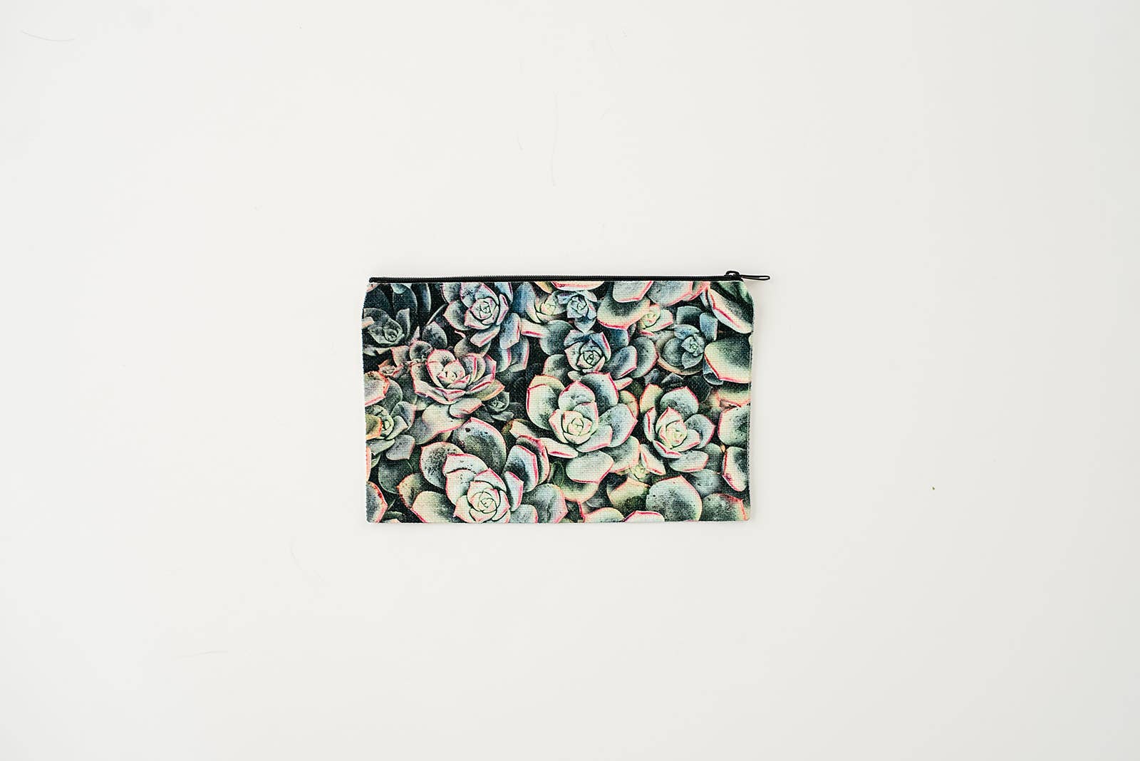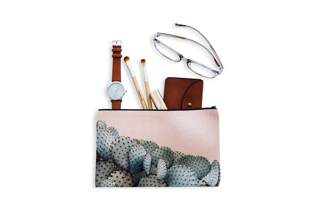 This White Rose Succulent cosmetic pouch is perfect for, but not limited to bridesmaid gifts or mother-of-the-bride gift. Father's Day Gift, Fourth of July, Independence Day Designed + Printed in Arizona. Size: 9" x 6" inches. Fabric: Linen Polyester blend Closure: Zipper. Washable At times products may vary to reflect the beauty of the artisanship.
