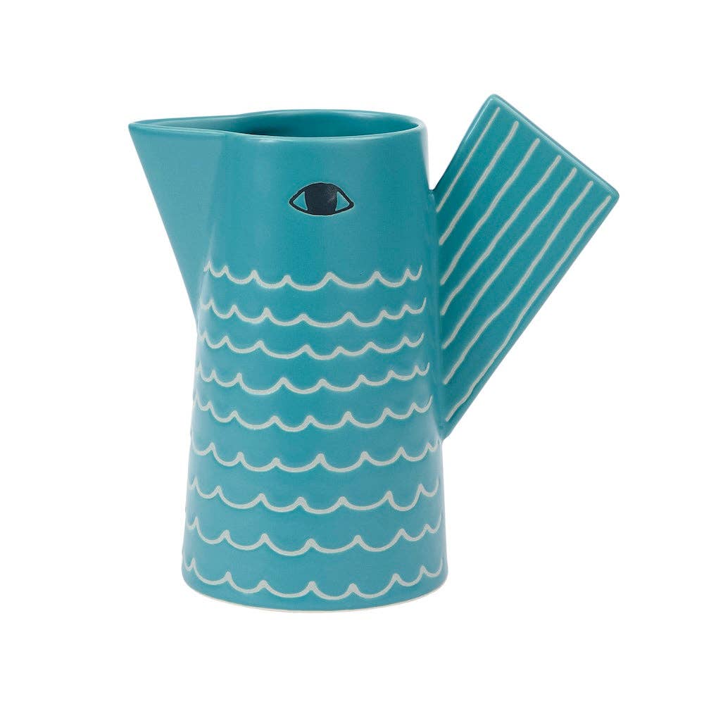 A bold striped ceramic jug, handmade in Ourika, a village in the High Atlas Mountains near Marrakech. With its tall 1.2L capacity, this jug is perfect for serving water, juice, sangria or cocktails, and also makes a striking vase for flowers. Each jug is painted by hand, so the stripe pattern and glaze vary, making every piece unique. Features Handmade in Ourika, High Atlas Mountains Available in 5 colours: Blue, Black, Green, Orange, Red Size: 12cm diameter × 22.5cm height (1.2L capacity) Food-safe glazed ceramic Hand wash recommended Why you’ll love it Large 1.2L size — ideal for serving drinks at the table Doubles as a decorative flower vase Mediterranean stripes bring colour to any home Each jug carries the marks of true handmade craft Origin & Craft Made in Ourika, southern Morocco, where artisans hand throw and paint each jug using traditional techniques passed down through generations.