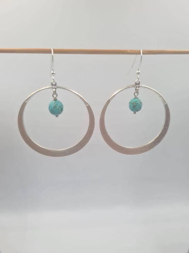Abstract, circular design Earring pewter, silver plated. This design resembles a contemporary take on geometric or minimalist jewelry style, emphasizing symmetry and fluidity, it is associated with themes of eternity, cycles, and balance.