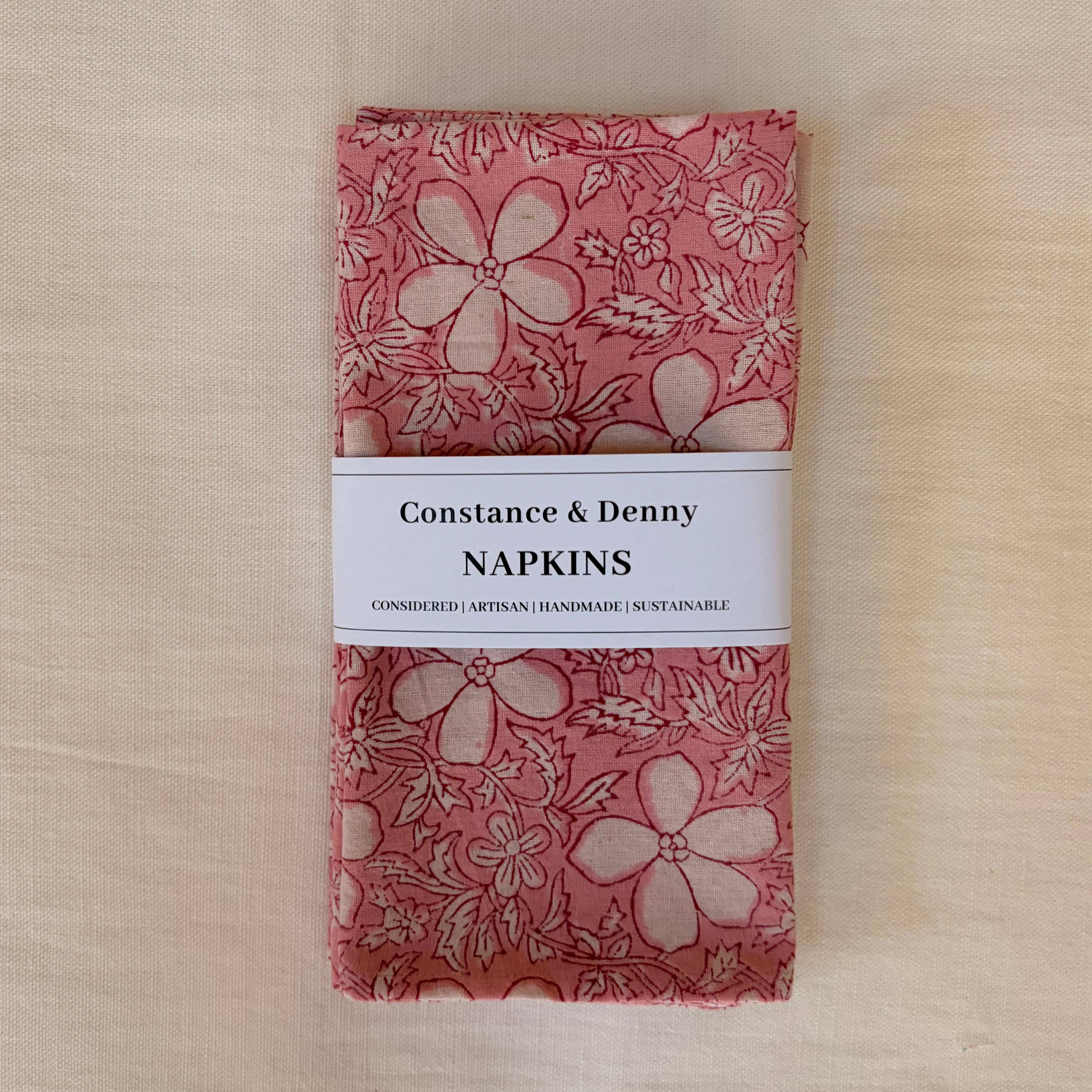 Our Sage & Blue Napkins are made with soft 100% cotton material and is hand block printed by artisans in Rajasthan, India using hand carved wooden blocks. Great skill and precision is required for the artist to create these fine hand block prints, and the natural variations that occur with hand block printed textiles adds to the authentic beauty of each piece. • These fair trade napkins have matching table runners and tablecloths. • Our cotton table linens are machine washable and showcase the beautiful block printing traditions of India with eco-friendly dyes. • Comes as a set of 4 napkins. -------------------------------- • Material: 100% Cotton • Color: Sage Green & Blue • Shape: Square • Care: Machine Wash in Cold Water, Hang to Dry • Dimensions: 20" x 20" -------------------------------- • Note: Since these napkins are printed by hand, no napkin set is ever the same and there may be very slight color differences between batches. --------------------------------