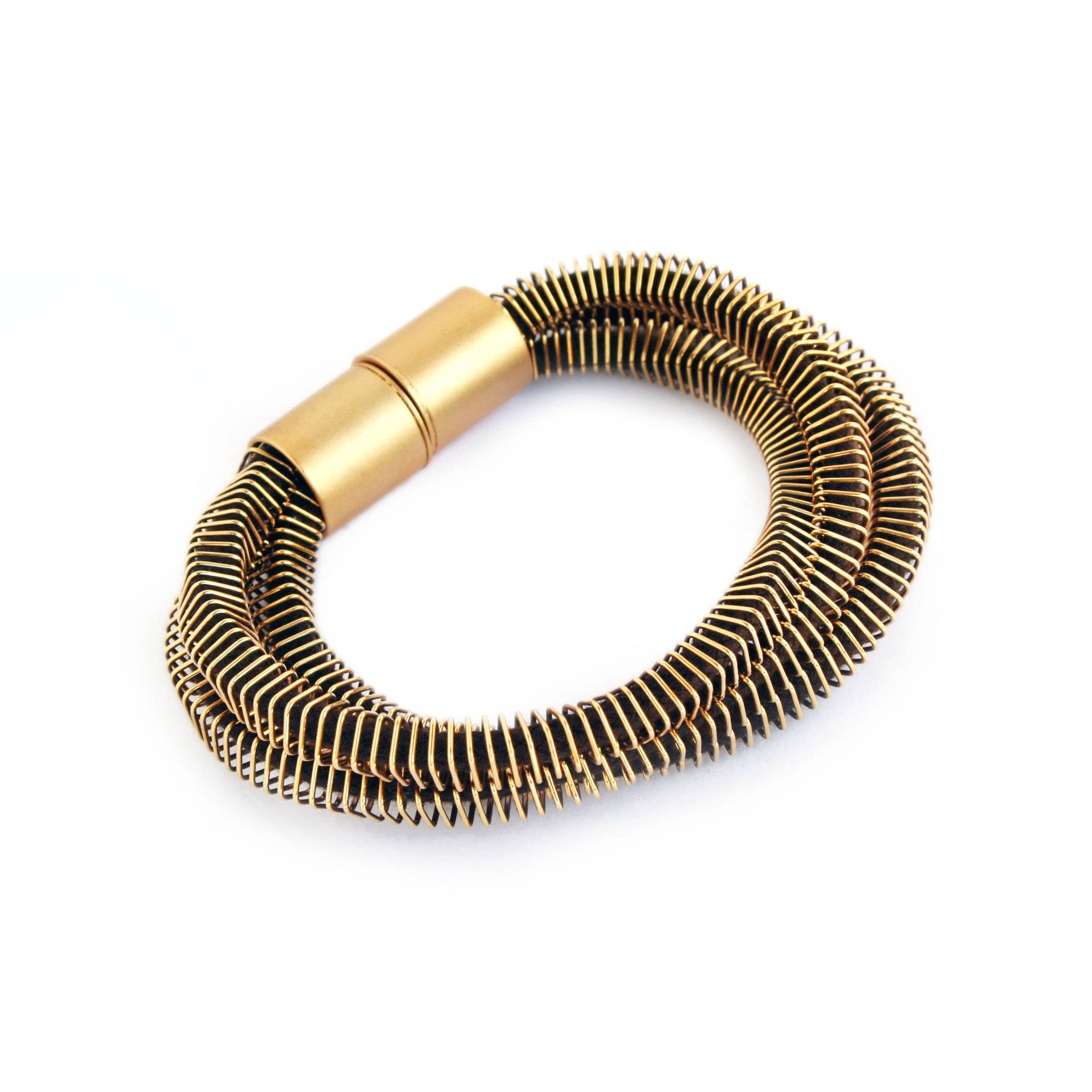 DETAILS: Hourglass pattern bracelet. Appliqued, metal clasp closure. SIZE: Hourglass pattern bracelet. Appliqued, metal clasp closure. MATERIALS: Glass seed beads, faux leather, thread, metal hardware. : Metal clasp closure, one size fits most. Please note the hardware in this collection has been antiqued- the metal will look tarnished with black color.