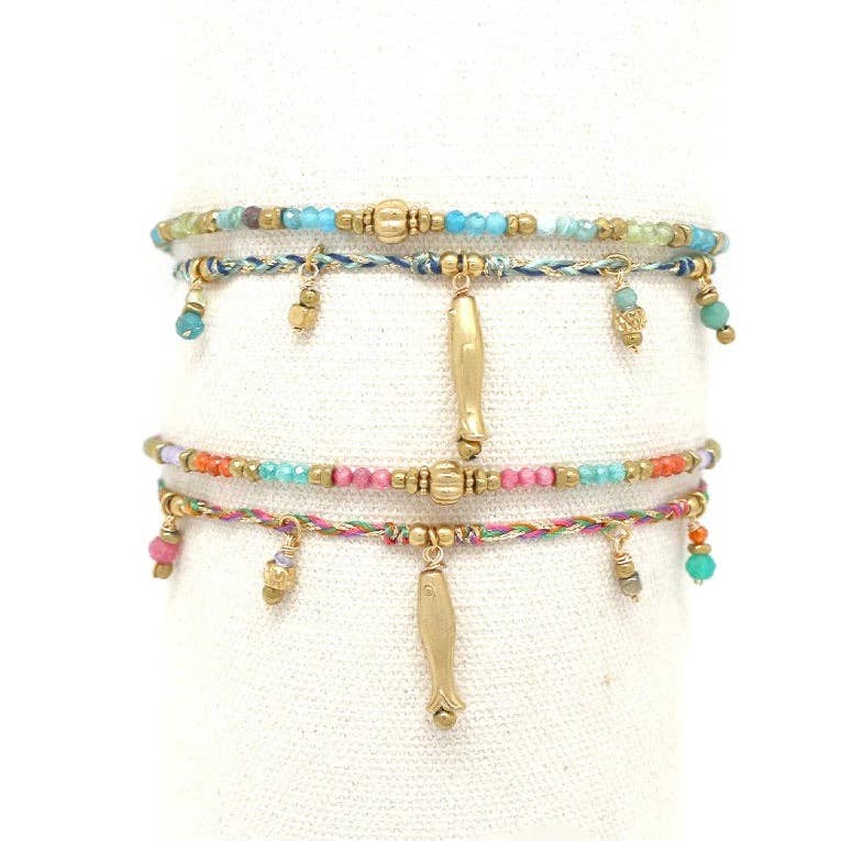 Maraca and Fish Charm Gold Chain Bracelet - B4-010