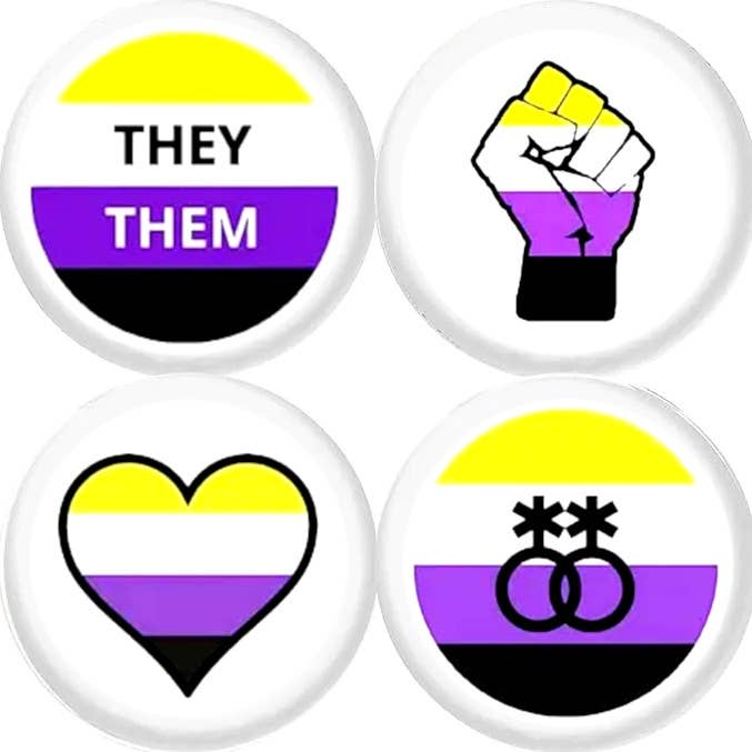 Non Binary x 4 LARGE 2.25" Inch (57mm) pins gay pride LGBTQ