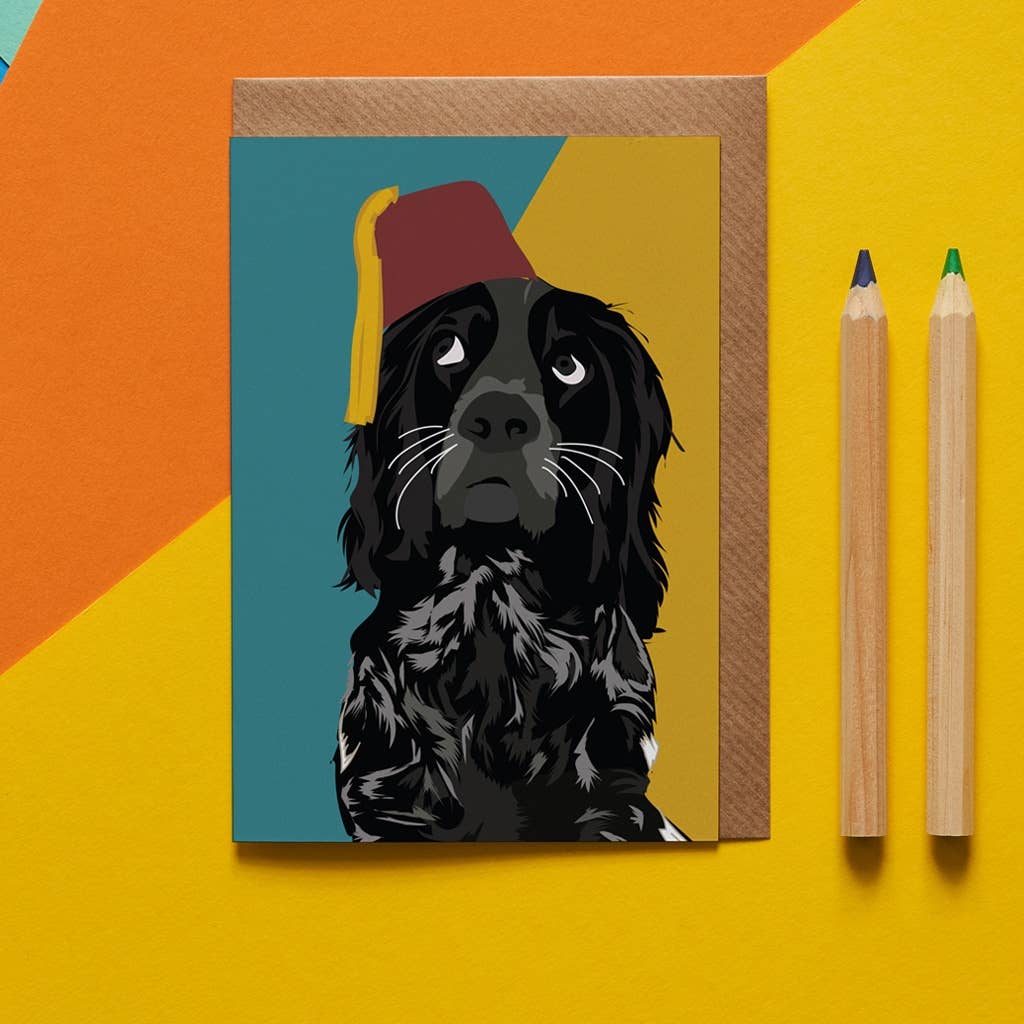 Illustration featuring a chocolate Labrador, wearing a green superhero mask and a green cape. Part of the Superhero pet collection. This collection also has a matching wrapping paper Blank inside for you to write your own message. This card can be used for many occasions such as birthdays, anniversaries and more Our cards on printed in the UK on high quality FSC card using recycled paper envelopes. We can send the order plastic free, or they come with biodegradable potato starch cellos as standard.
