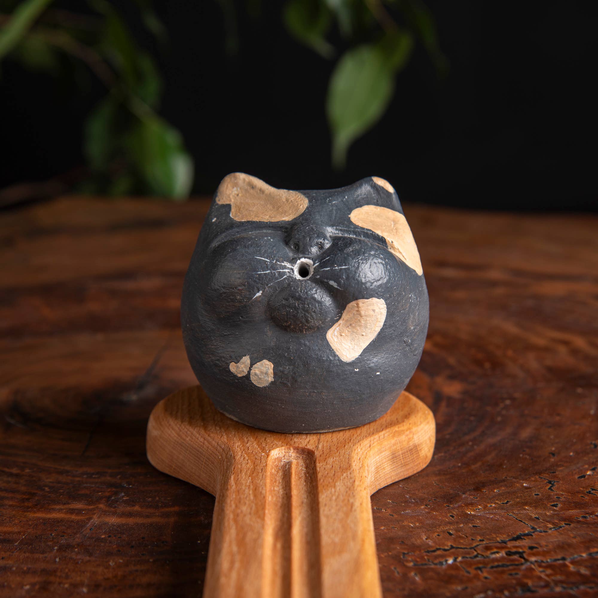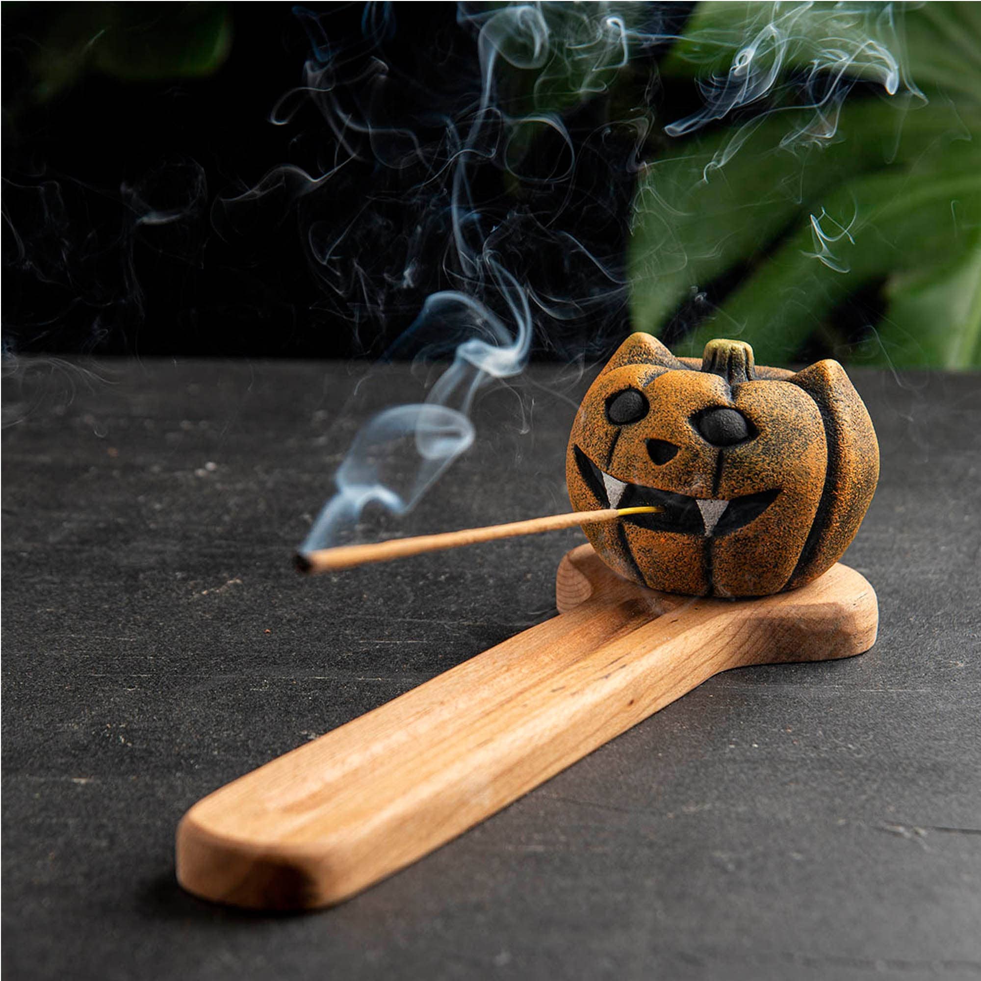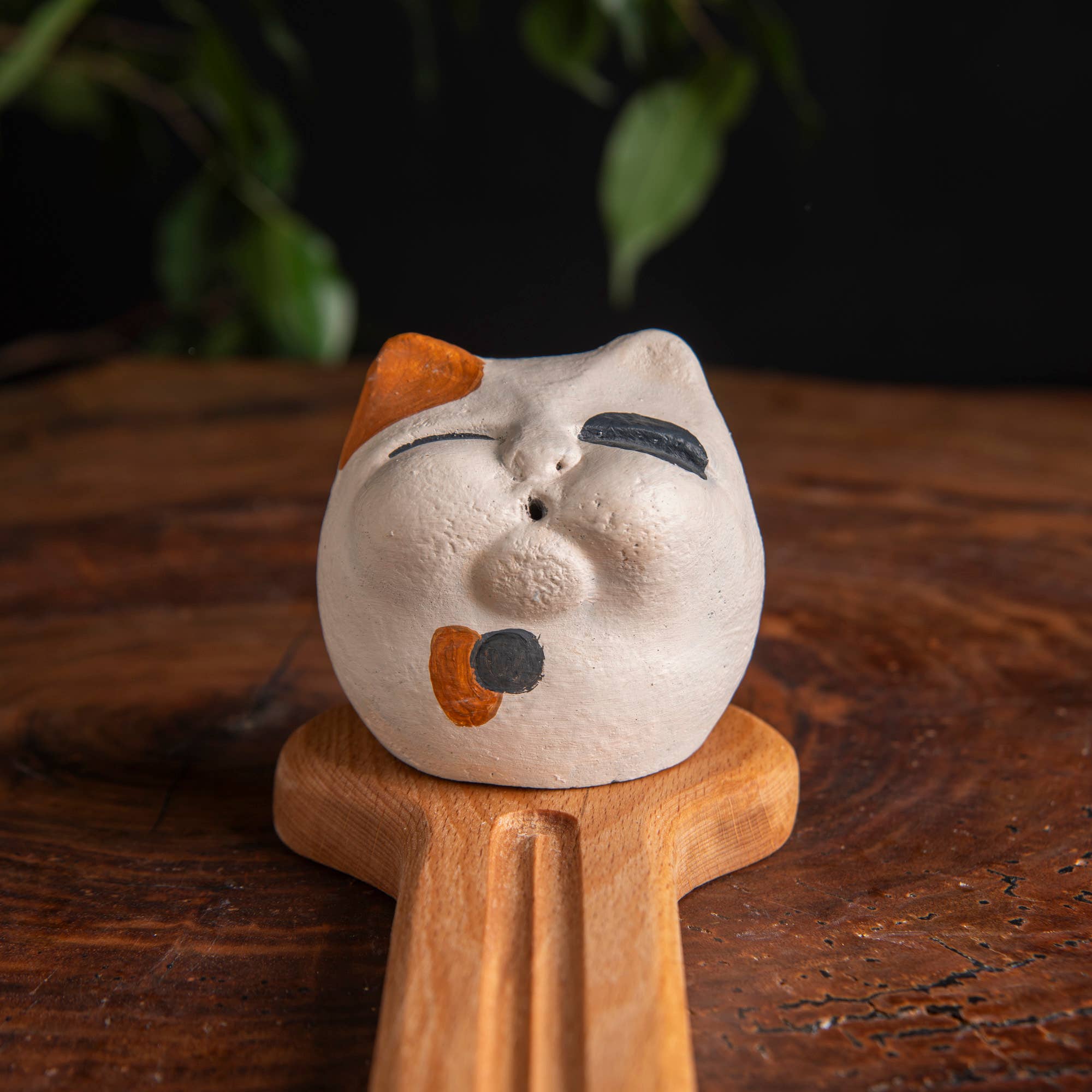 The ghost incense holder is a high-quality product made from real stone dust and will not break easily. Our 100% hand-made ghost incense holder is made from cast stone. Real rare stone powders were cast on the mold to craft the figure. A glossy acrylic varnish has been applied to the stone to give it a wet look. Also, real raw beech wood is used for the base of the incense holder and the natural wood is shaped by hand carving. Please note that our products are hand-made. There may be minor superficial differences because of the nature of handmade. For example, the texture and colour of the figures may slightly change. The light used in the photo shoot may make the colour of the product slightly different.