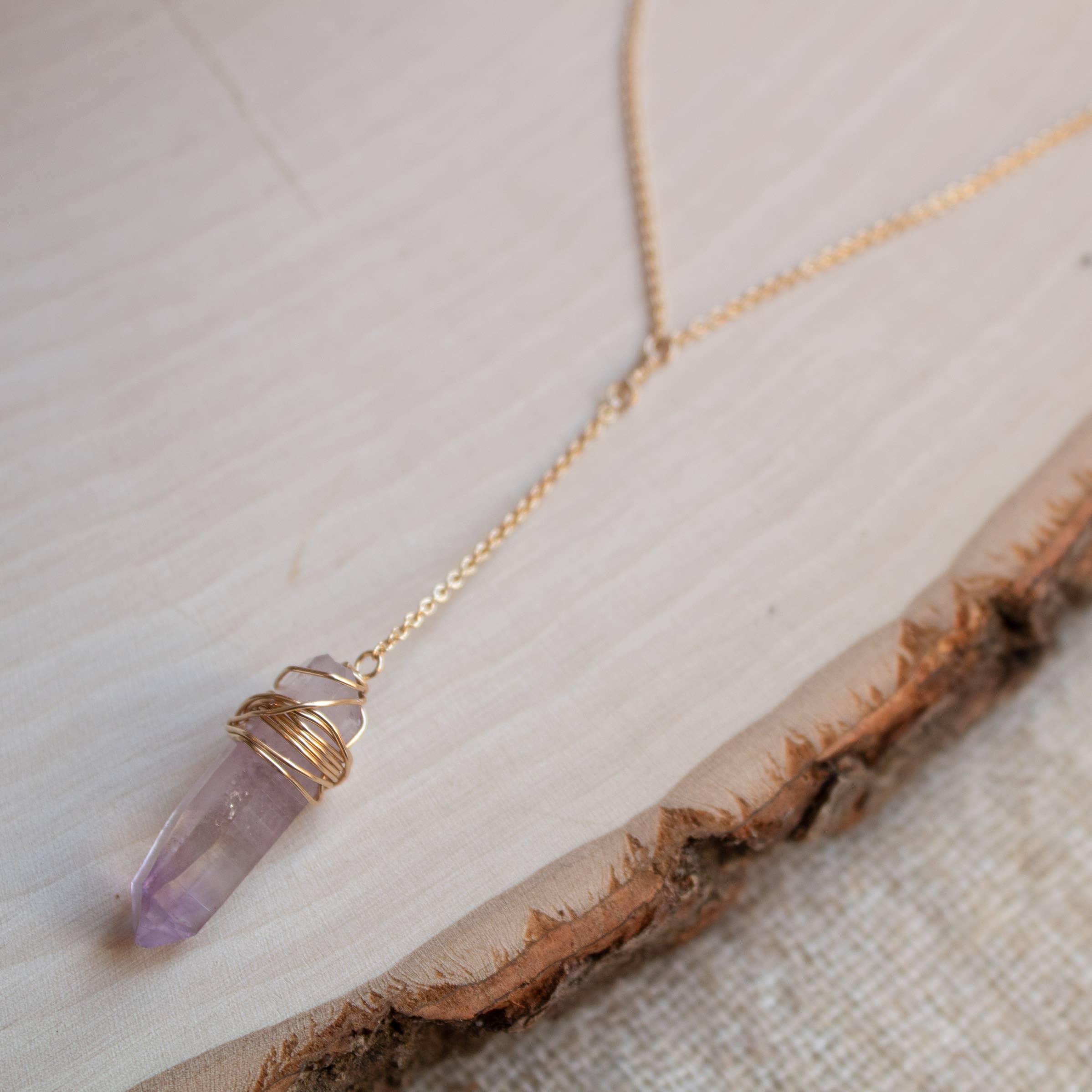 Lemurian Quartz Pendulum Necklace 14k Gold Filled