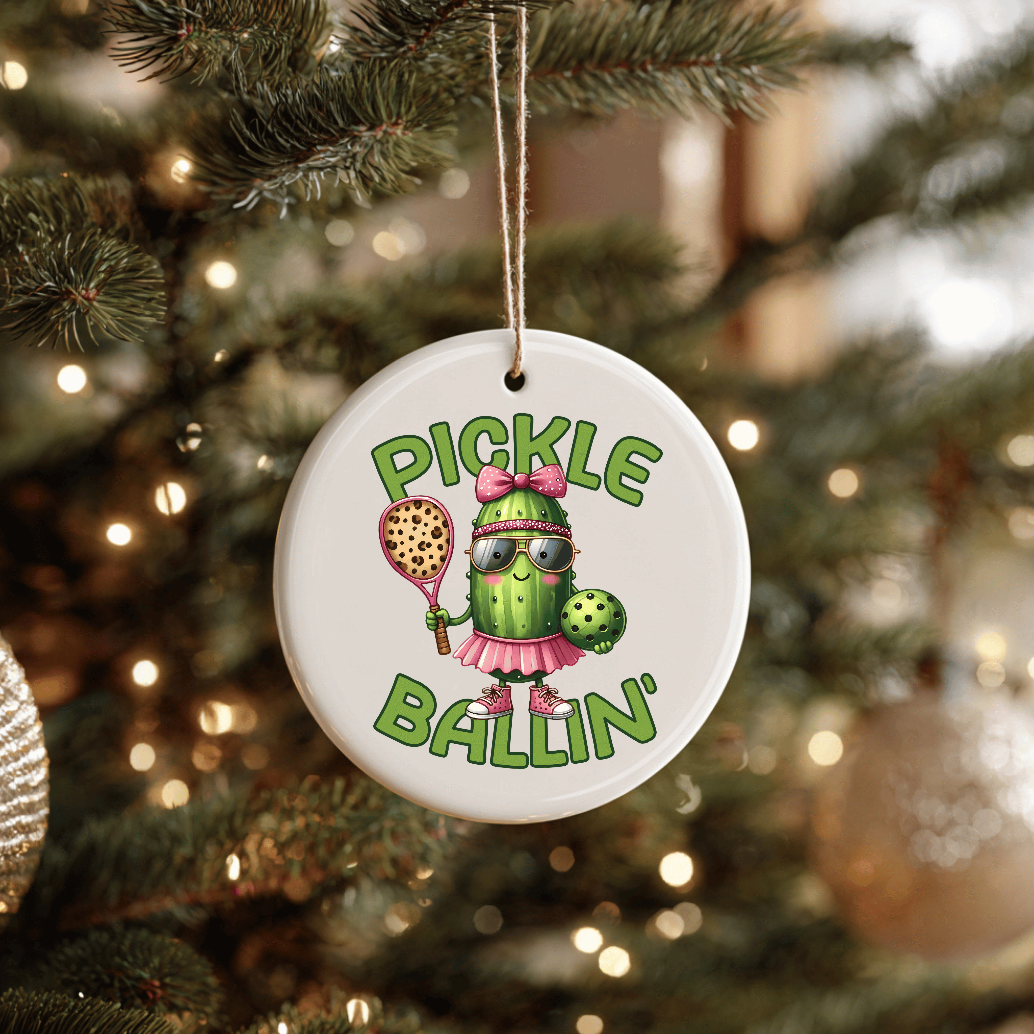 Our ceramic ornaments measures 3" round and is double sided. The ornaments are boxed individually.