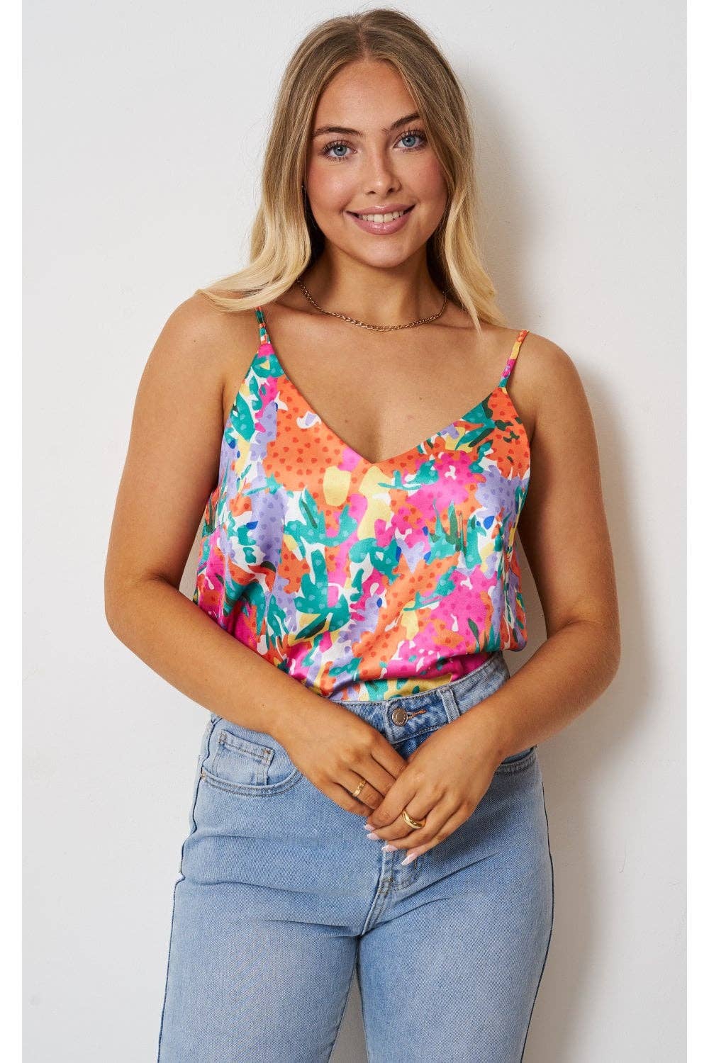 Our spaghetti strap camisole is every woman's must have! Perfect to wear alone on warmer days or can be layered under tank tops, t-shirts a 92% nylon/8% spandex. One size: designed for girls/women who wear womens size xs-med.