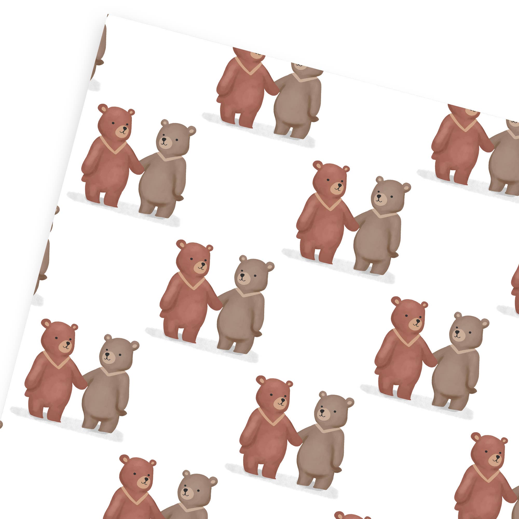 Sold as individual 19 x 27 inch sheets of flat wrap, or as 3 sheets rolled and sealed together in cellophane (without a cardboard core). Illustrated by N.J. Frith. Printed by Red Cap Cards in Los Angeles, California, USA, on recycled paper.