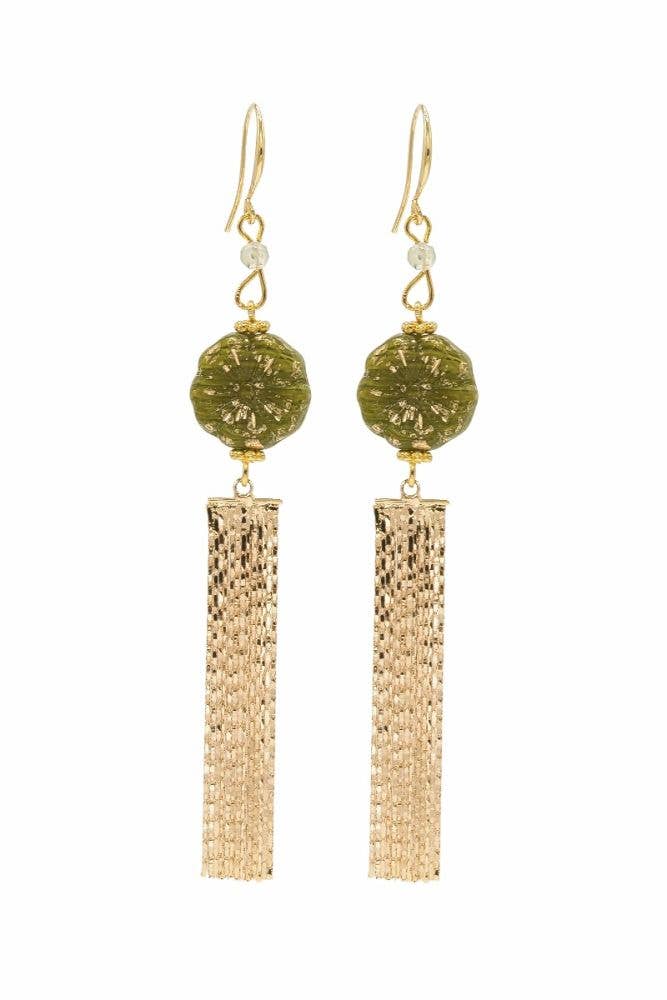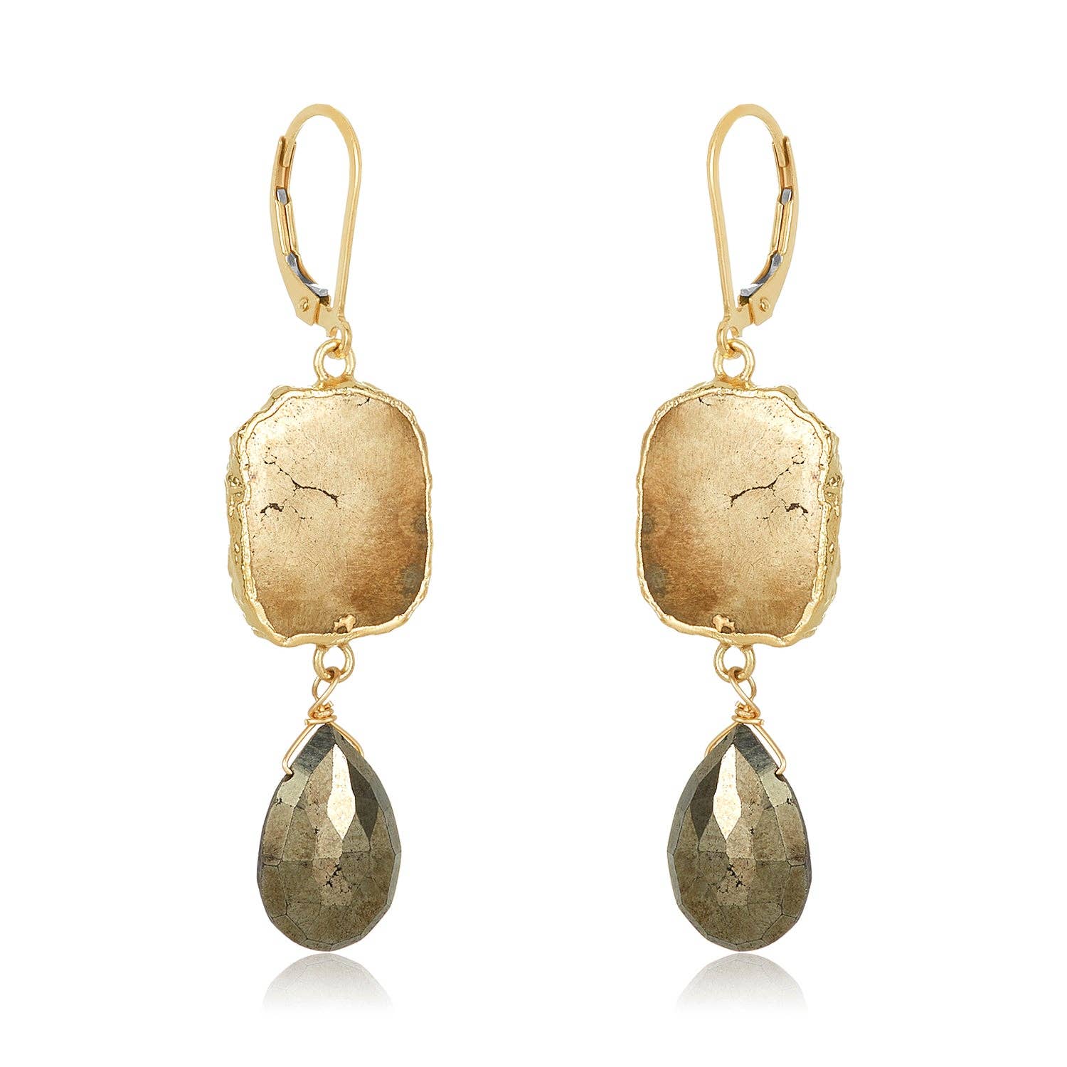 Pyrite or seed pearls wrapped in a square silver post with silver and oxidized silver and gold filled chain. Length: 2.75 inch Handcrafted in Mabel's studio.